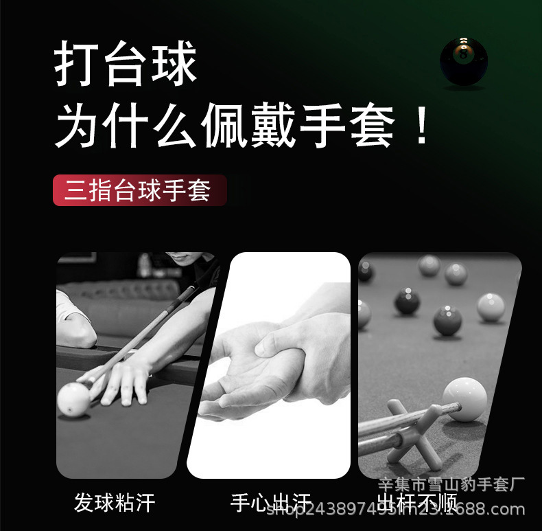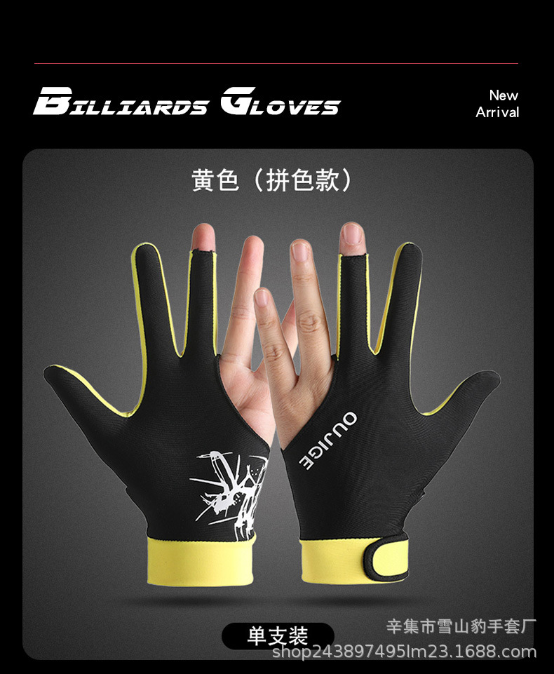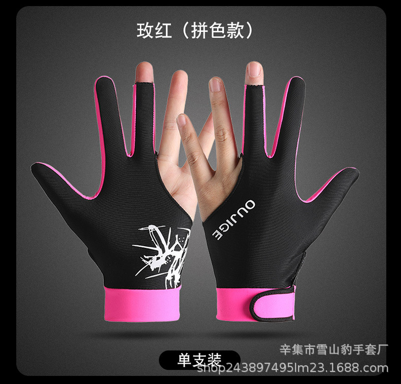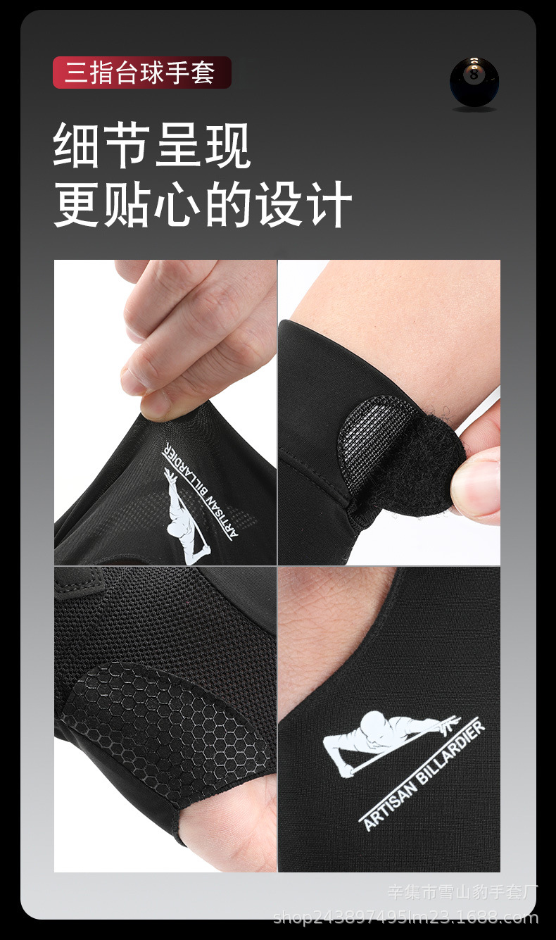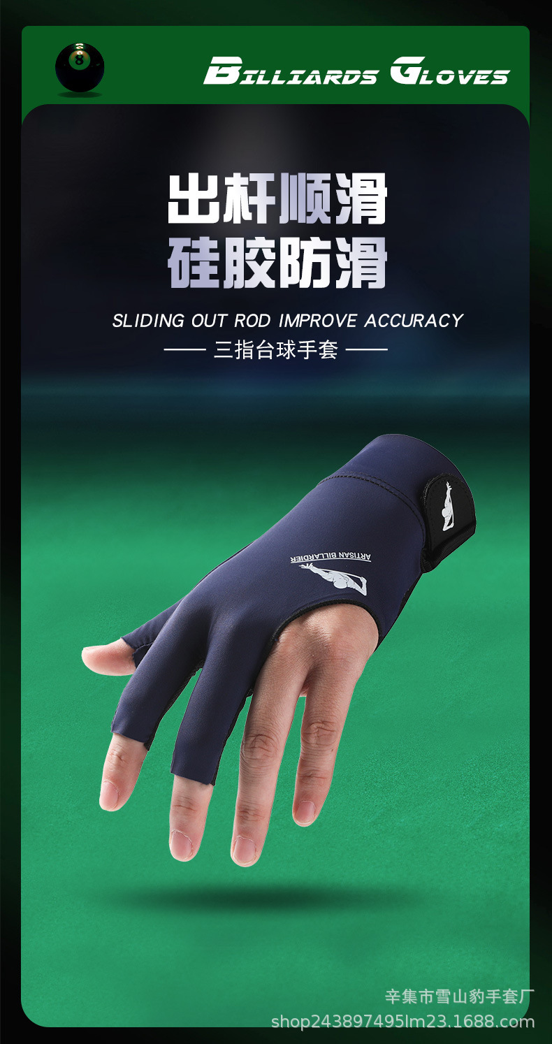 ビリヤード手袋男女テーブルボール露指プロスヌーカー試合専用滑り止め薄金三本指高弾A34-TQ