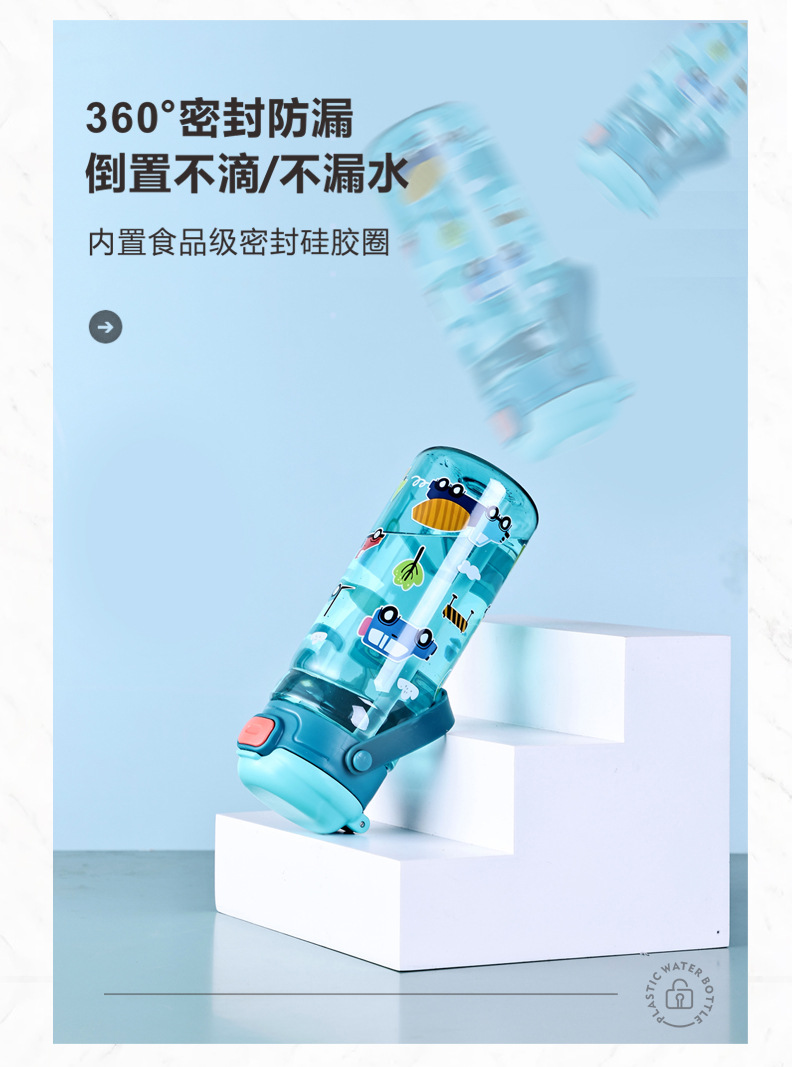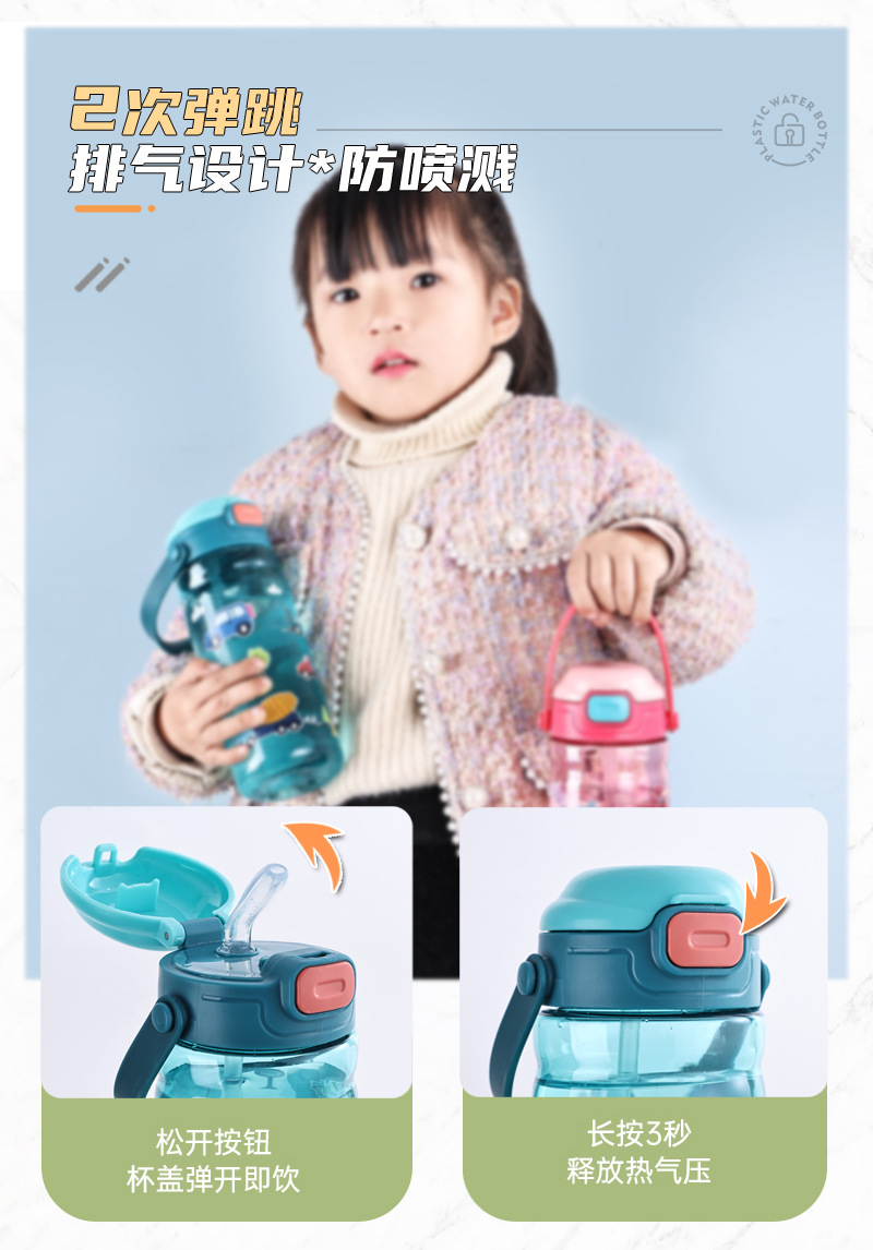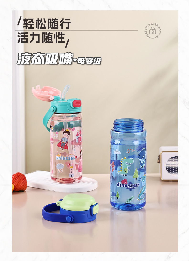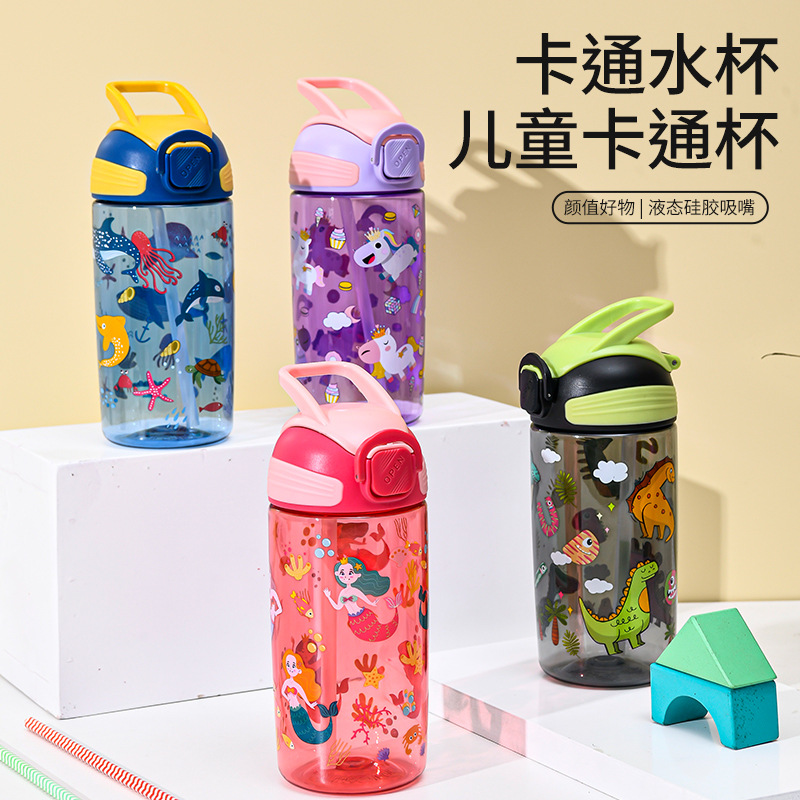 夏のかわいいアニメ児童プラスチックコップ高颜値学生ストローコップ屋外携帯学校専用コップ