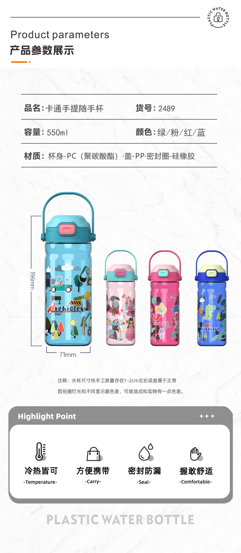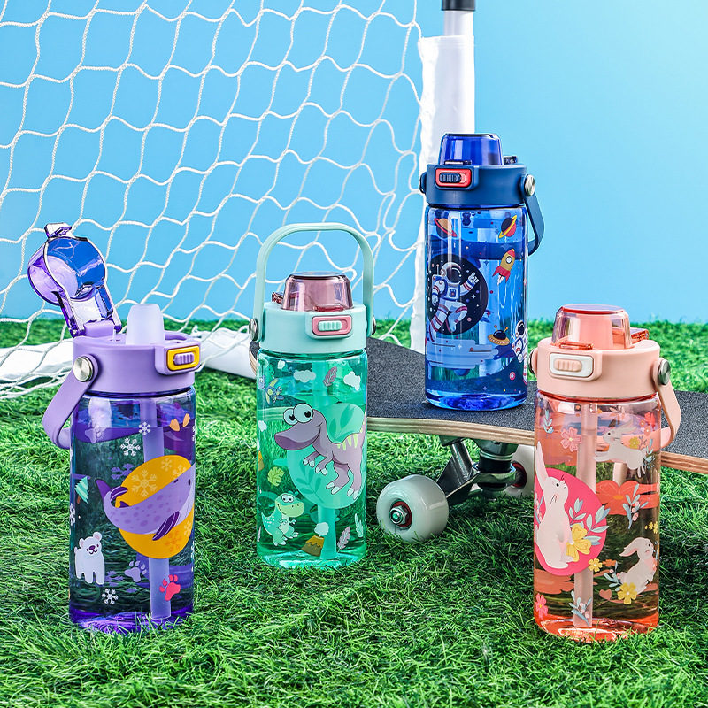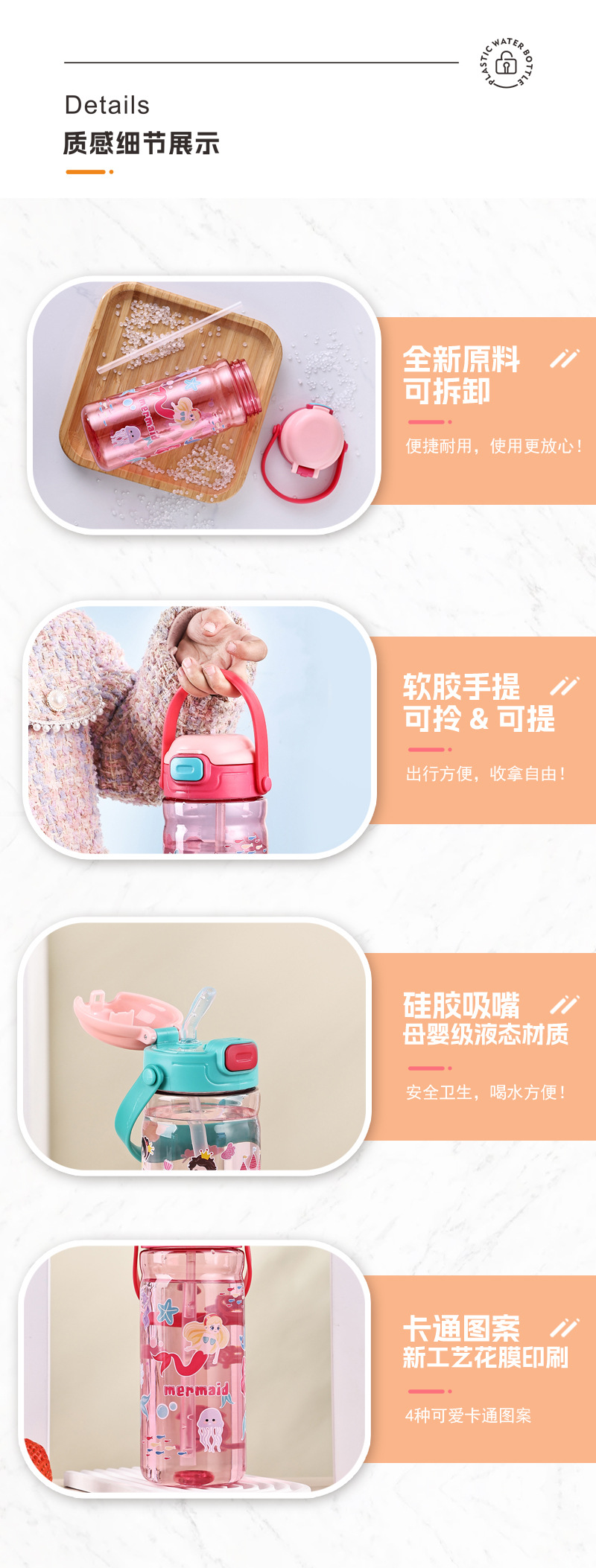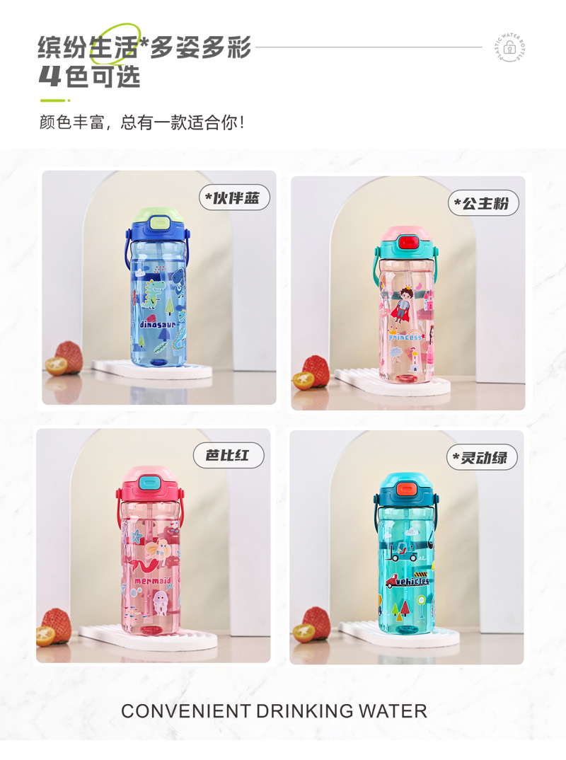 夏のかわいいアニメ児童プラスチックコップ高颜値学生ストローコップ屋外携帯学校専用コップ