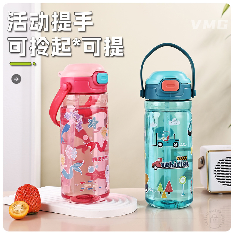 新しいかわいくて見栄えの良い漫画の子供用プラスチック製ウォーターカップ、夏の学生用ストローカップ、学校での飲料水用の屋外ポータブル
