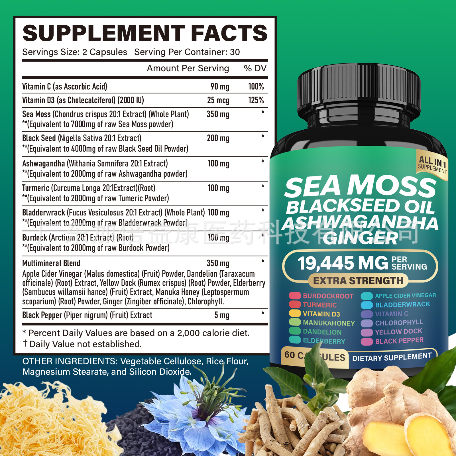 カスタマイズされた海藻カプセル、ブラックシードオイルカプセル、モスブラックシードオイル、アシュワガンダカプセル