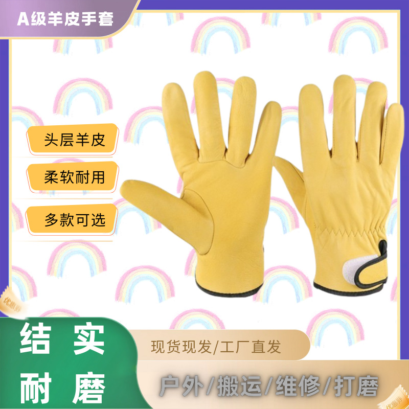 厂家批发羊皮司机手套焊工手部防护手套短款防烫隔热耐磨电焊手套