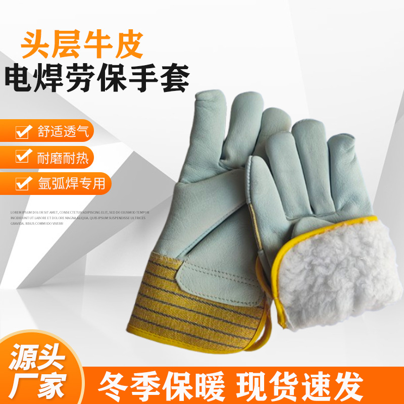 半皮頭層牛革冬保温防護手袋切断防止断熱柔軟電気溶接労働保護手袋卸売り