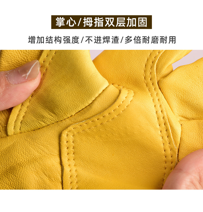 羊皮電気溶接労働保護手袋卸売り耐摩耗性短金黄色断熱防熱二重アルゴンアーク溶接作業手袋