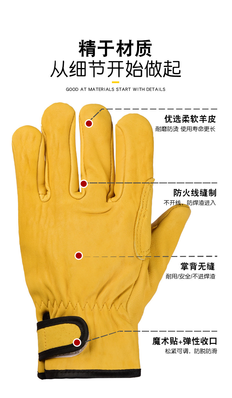 羊皮電気溶接手袋溶接工アルゴンアーク溶接機械工事現場耐摩耗断熱耐高温柔軟労働保護手袋