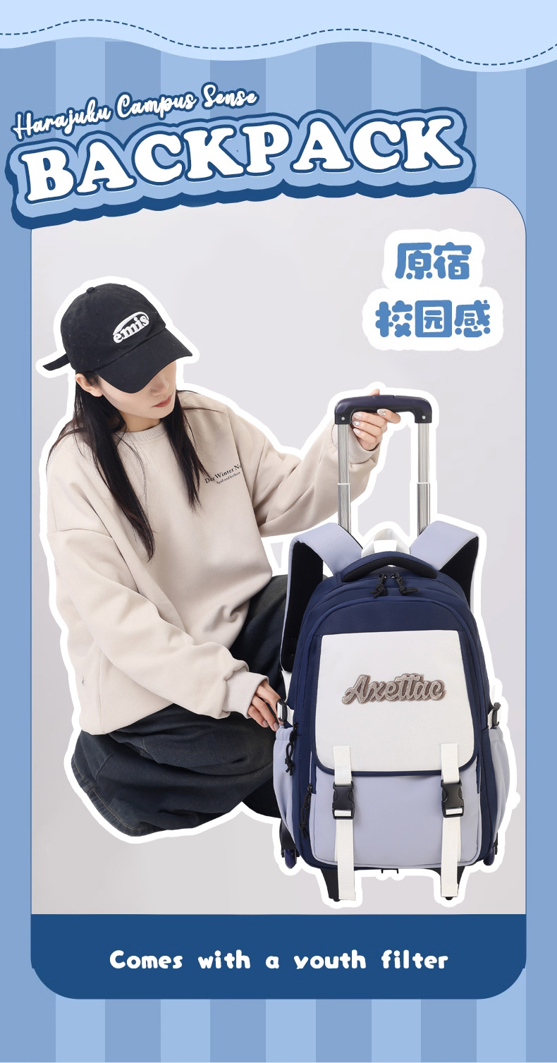 自然鱼拉杆书包中学生大容量新款韩版时尚初高中爬楼梯六轮拉杆包