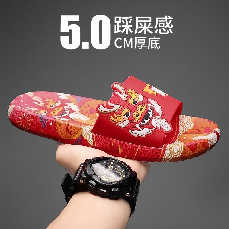 本命年の赤いスリッパ男性は夏に厚い底の通気性のあるカップルのサンダルを履いて滑り止めの耐摩耗性のある男性を履いています。