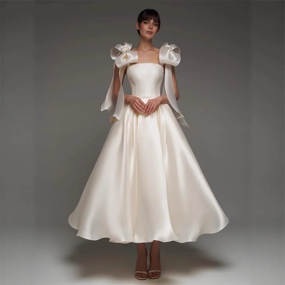 サテンライトウェディングドレス 2025 新しい社交界の宴会パーティー卒業旅行写真シンプルな小さなドレス