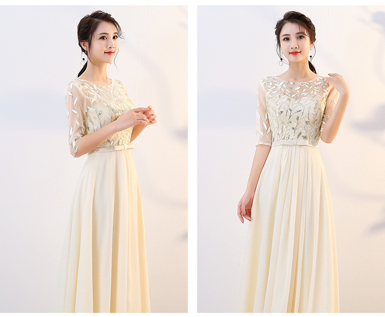 ブライダルトーストドレス 2025 新しいミドル丈スタイルは、通常の結婚式や婚約式のホスト感謝宴会ドレスとして着用できます。