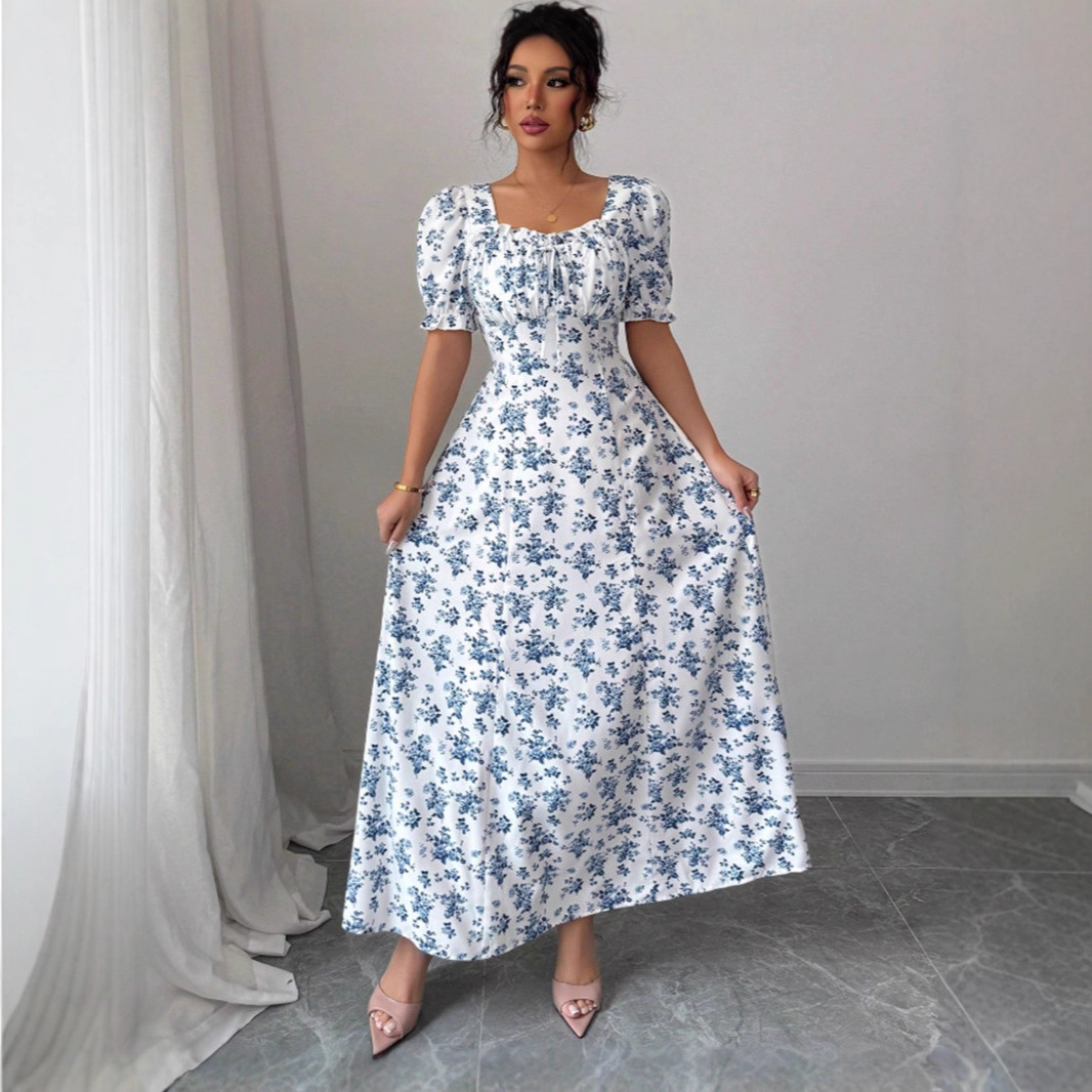 国境を越えた貿易ヨーロッパとアメリカの服 2025 夏アマゾン独立ステーションファッションプリントショートスカートパフスリーブドレス