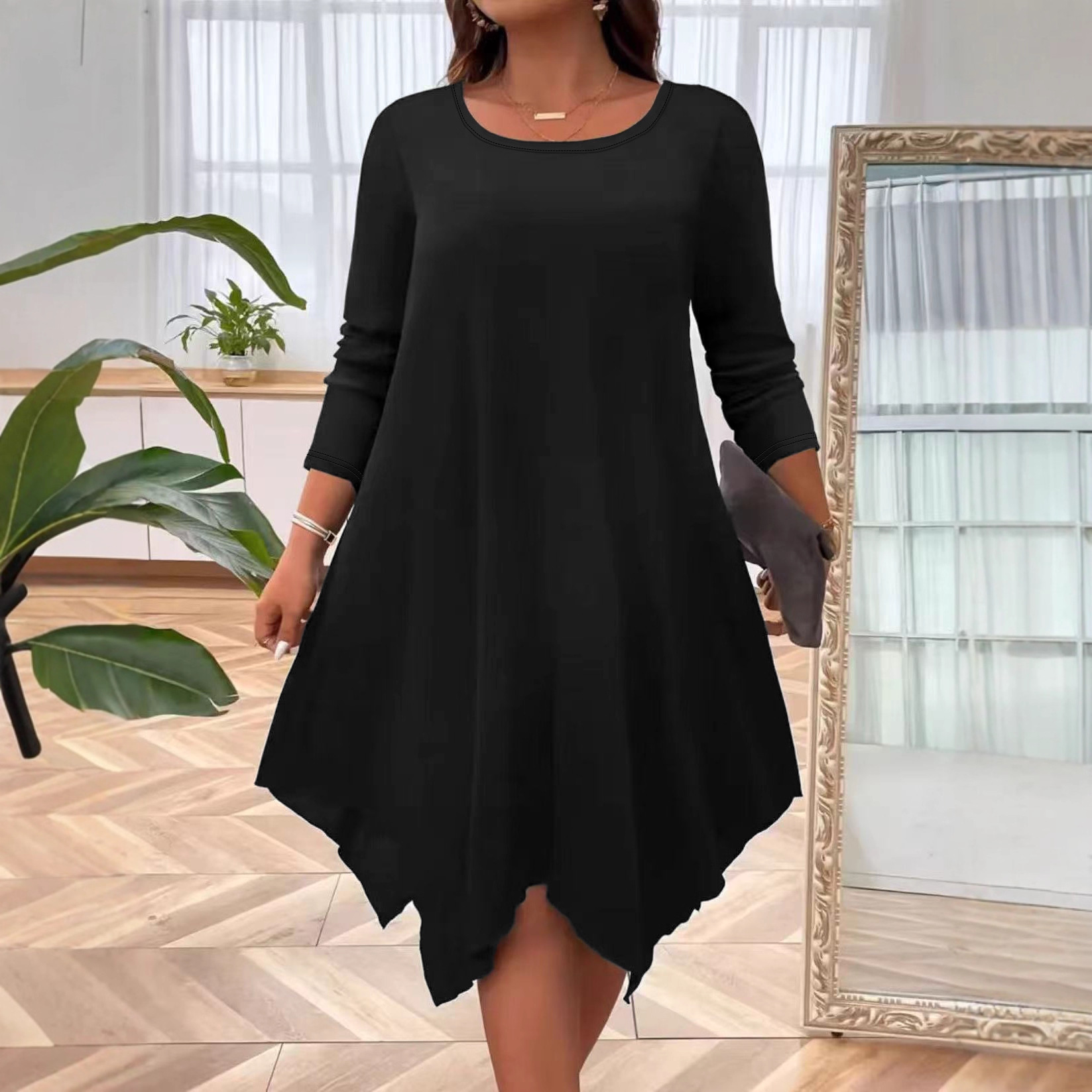 2025跨境欧美亚马逊速卖通秋冬季新款女装优雅圆领中长款连衣裙