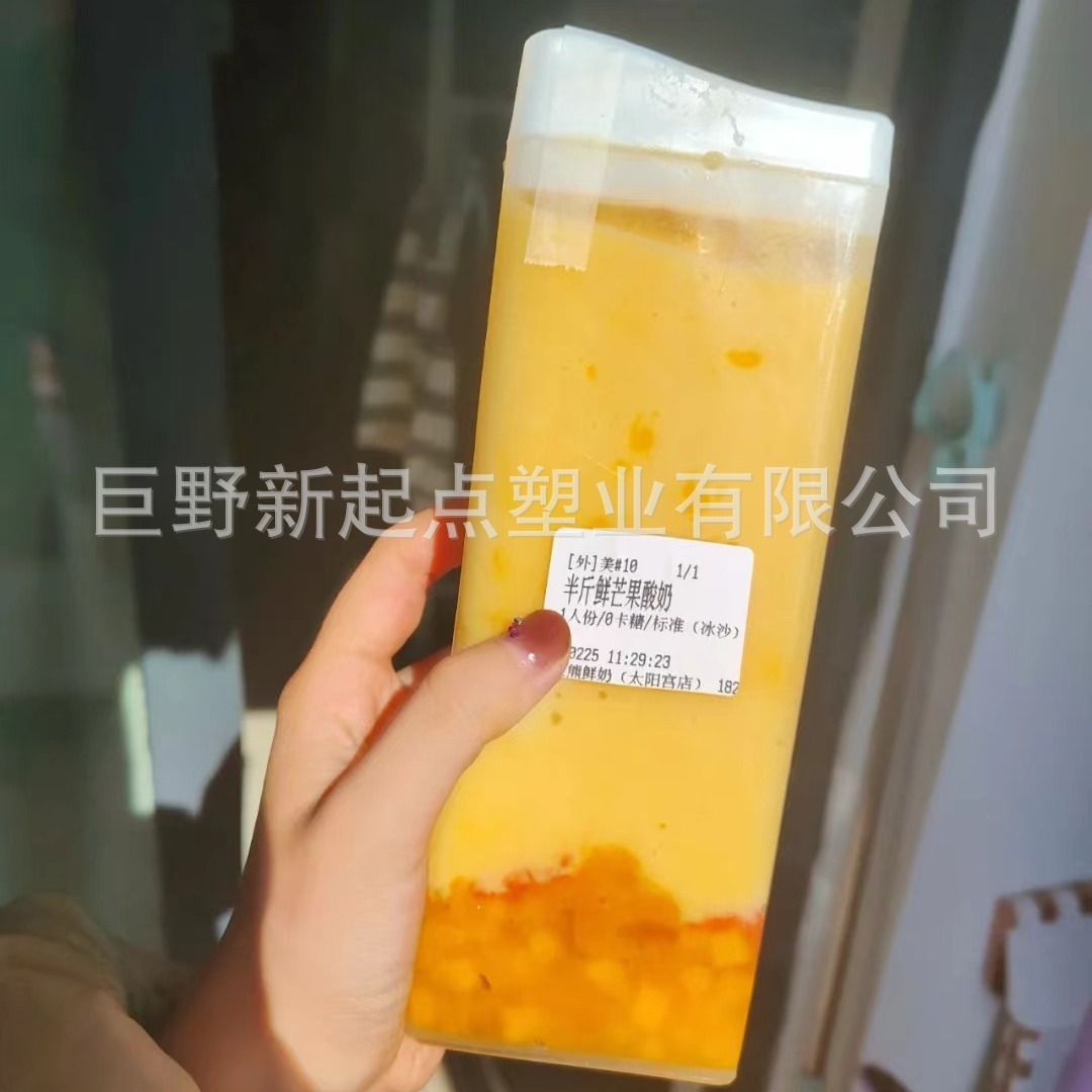 500mlネットレッドミルクティーカップpp耐高温創造性金板煉瓦カップ使い捨てペットボトル飲料瓶ジュース瓶