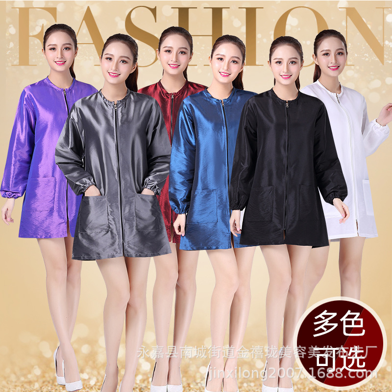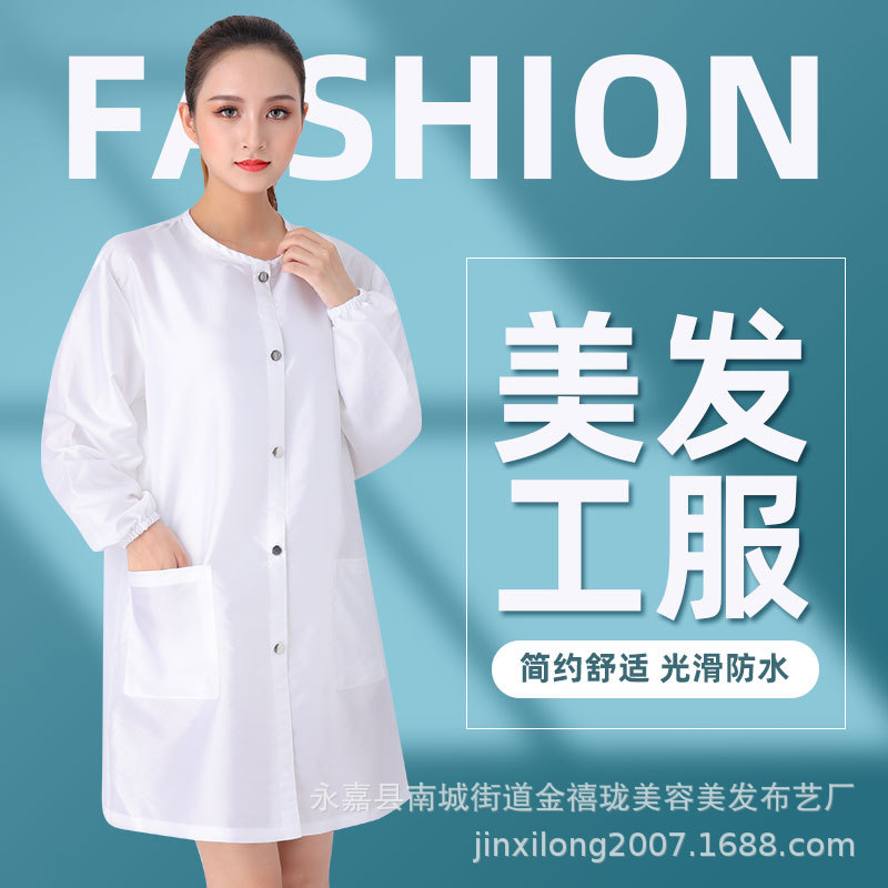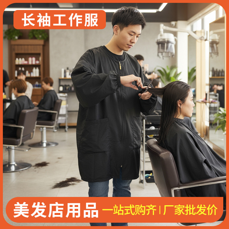 理髪師長袖作業服美容アシスタント理髪服パーマ染めグラタン防水カット服は髪をつけない