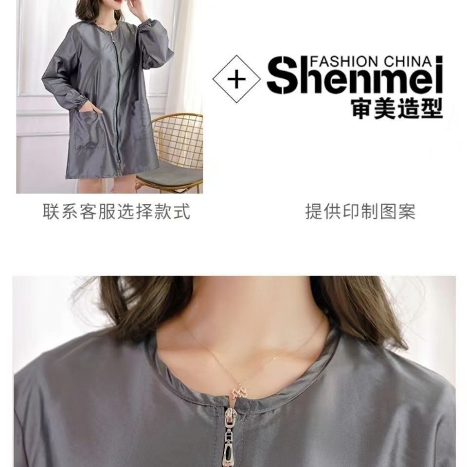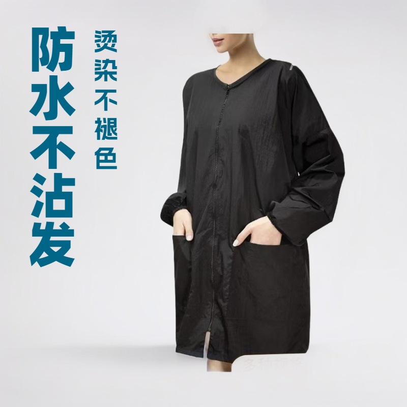 理发店长袖工作服烫染工服发型师围裙罩衣美发防碎发不粘发防护服