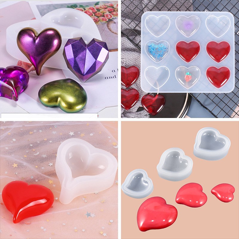 水晶滴ゴム金型diy手作りハート型ケーキ金型3種類の愛バレンタインデープレゼントシリコン金型