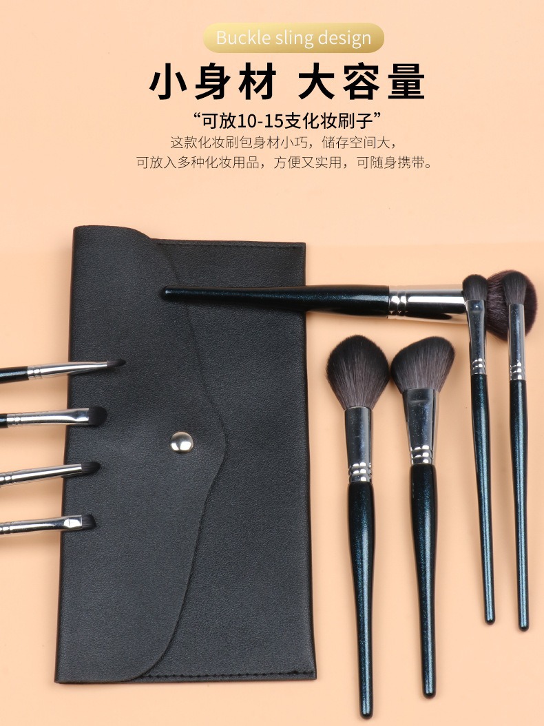 厂家直供12支刷子收纳包黑色PU便携美妆工具化妆刷包卷袋现货眼影