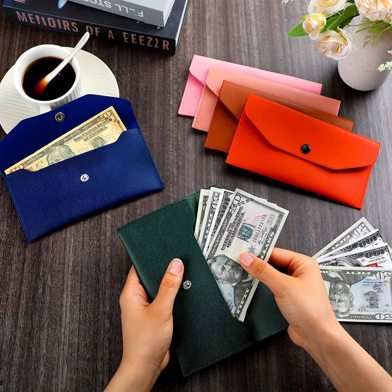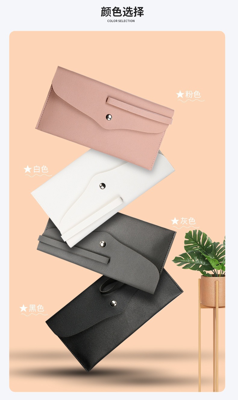 Pu革銭封筒財布、再利用可能な銭封筒財布、シンプルな純色長財布、時