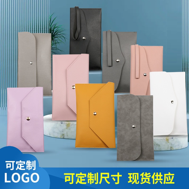 純色高級PU皮革化粧バッグ日韓アウトドア携帯小銭入れ長タイプPU皮収納革挟みメガネ