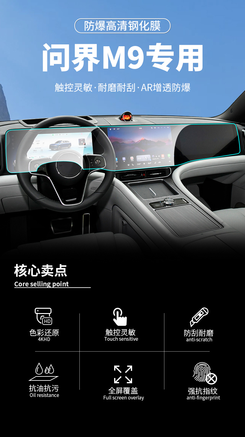 华为问界M9/M8/M7/M5汽车导航屏幕钢化膜中控仪表盘保护贴内饰膜