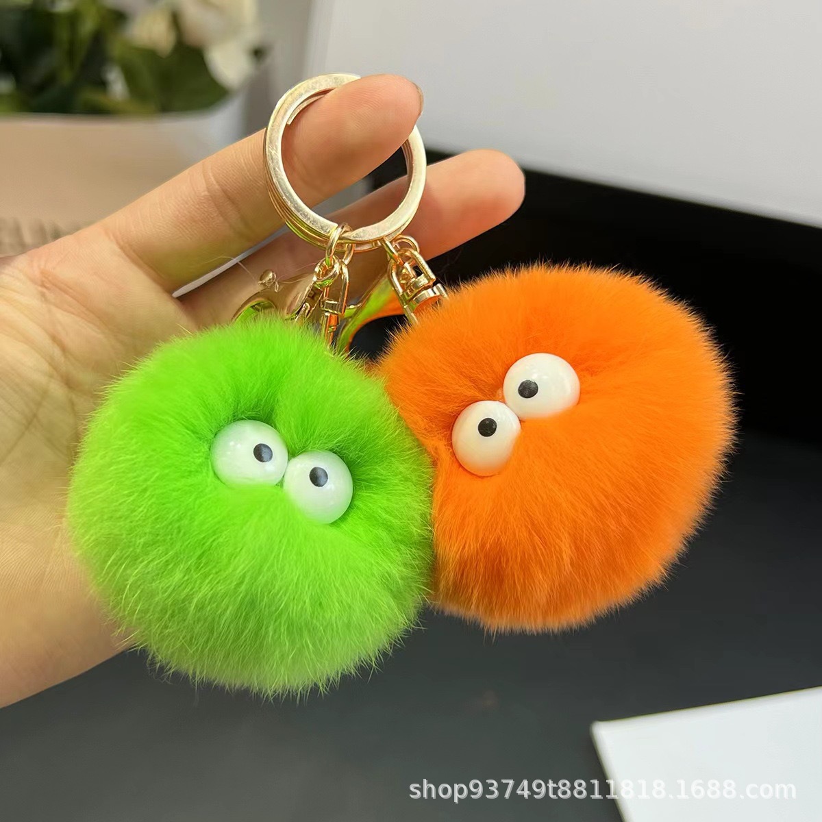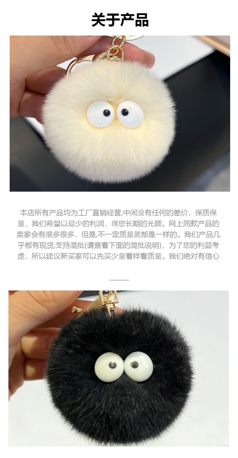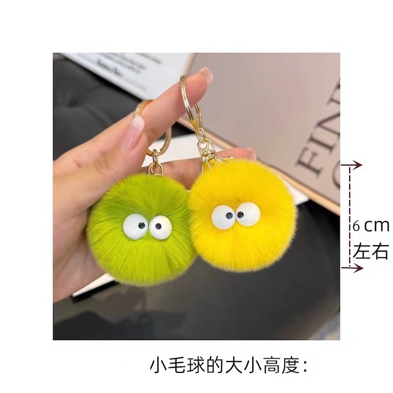 仿獭兔毛小煤球精灵汽车钥匙扣挂件ins网红可爱毛绒公仔包包挂饰