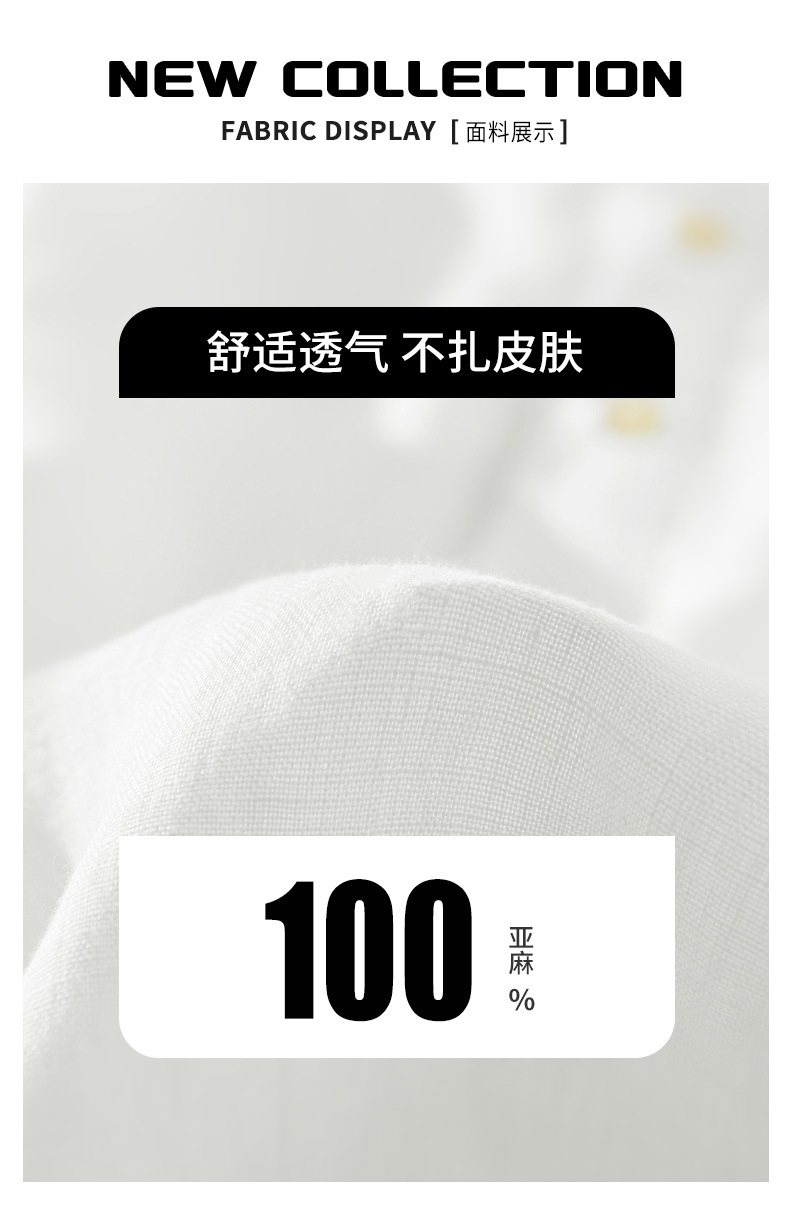2402日系清新襟ラミー麻シャツ男性カジュアル通気性上着ファッション綿麻純色ゆるいコート