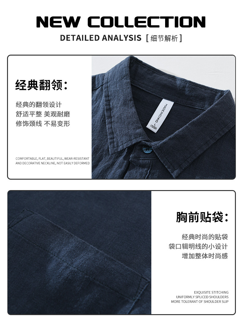 2310男性ラミー麻長袖シャツ春秋カジュアル襟大サイズジャケット日系工装コート服男