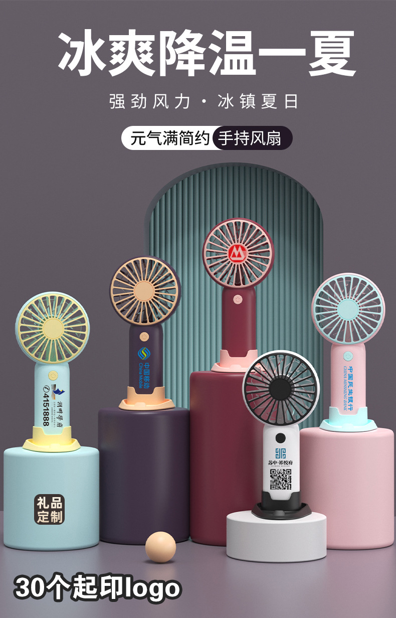 ミニファン夏プレゼント実用景品USB充電ファン団建送お土産ロゴ