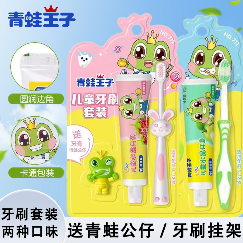 カエルの王子の新しい愛芽星の子供の歯ブラシの歯磨き粉のセットはコップの歯のコップの双効の歯の細い柔らかい毛を送ります。