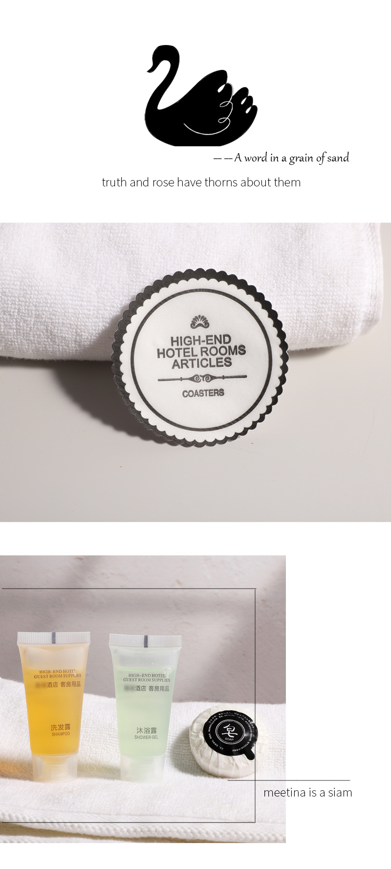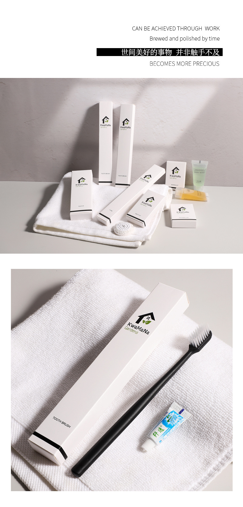 ホテル・B&B用使い捨てトイレタリーセット、スター級ホテル用歯ブラシ、ソープ、モランディシャンプー、高級スリッパ