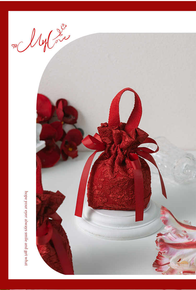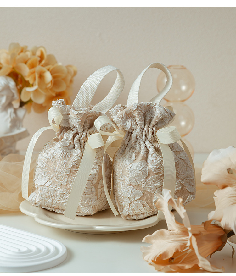 ins风结婚喜糖盒布袋子手提喜糖袋订婚回礼糖袋高级感婚礼伴手礼