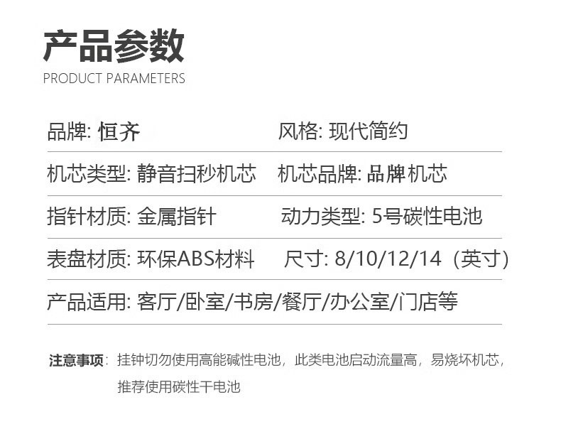 【8インチ20センチ】軽贅沢静音時計シンプル家庭用掛け時計の新型家と富貴石英時計