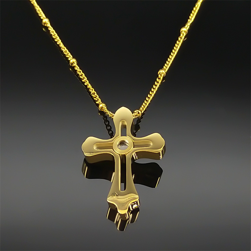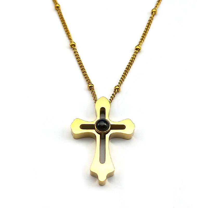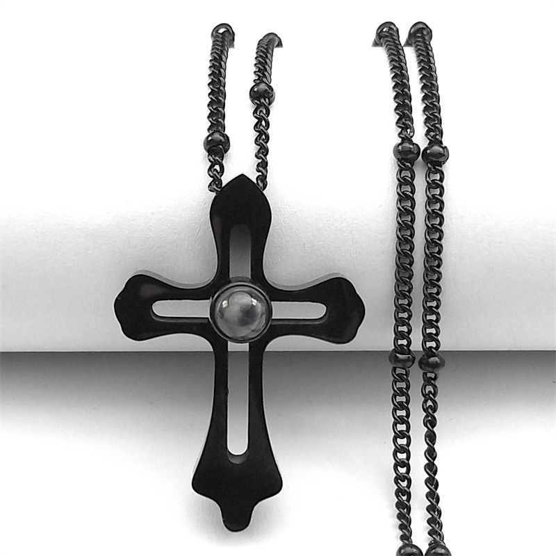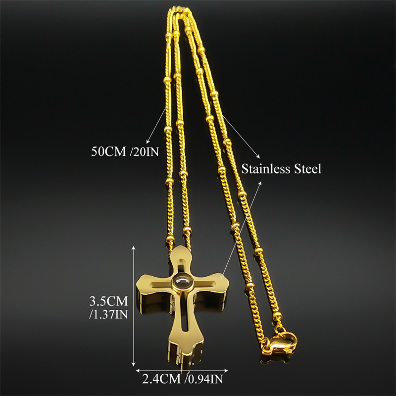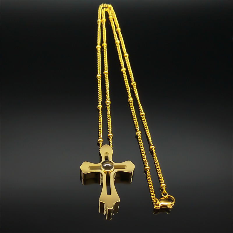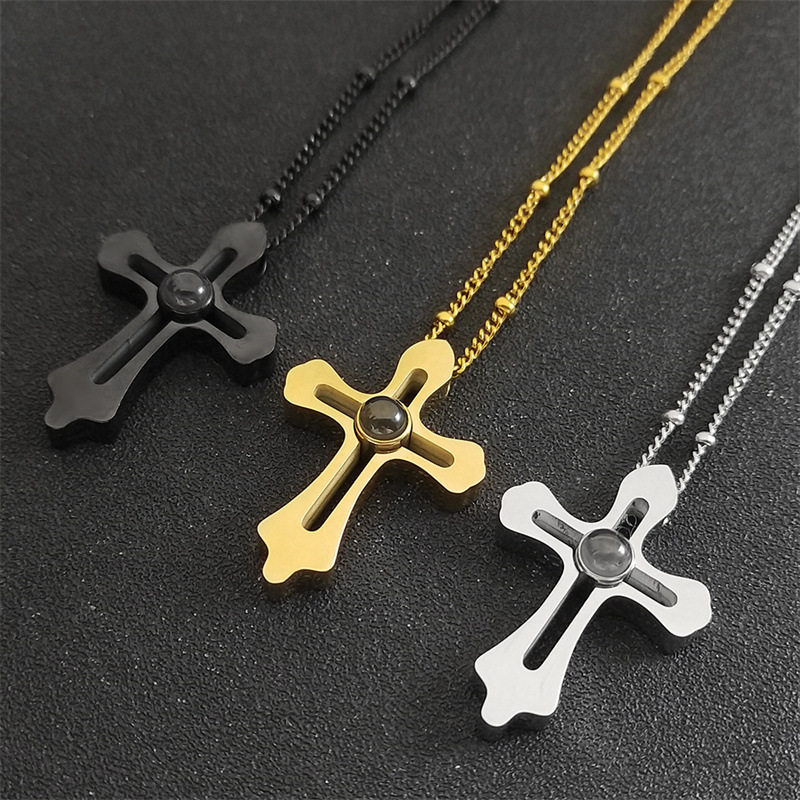 クロスボーダー新型欧米透かし彫り投影クロスネックレスステンレスアクセサリー高級感ヒップホップ風ペンダント