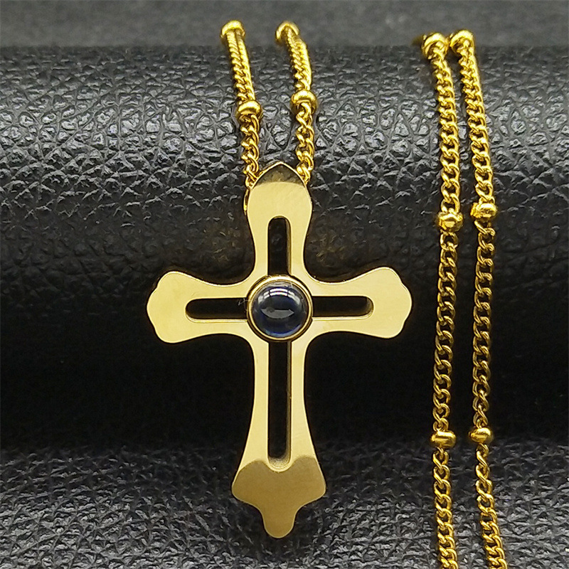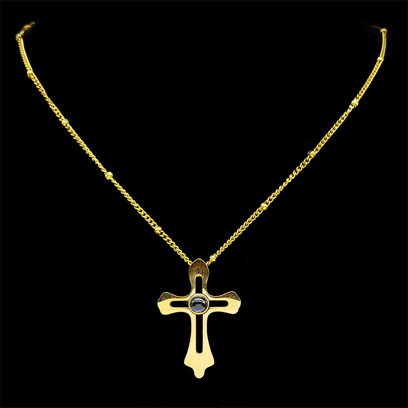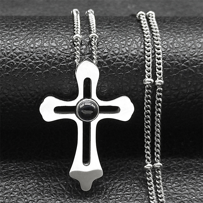 クロスステンレスネックレスセントベネディクトクリスタルセントペンダントクロス男ネックレスジュエリーネックレス