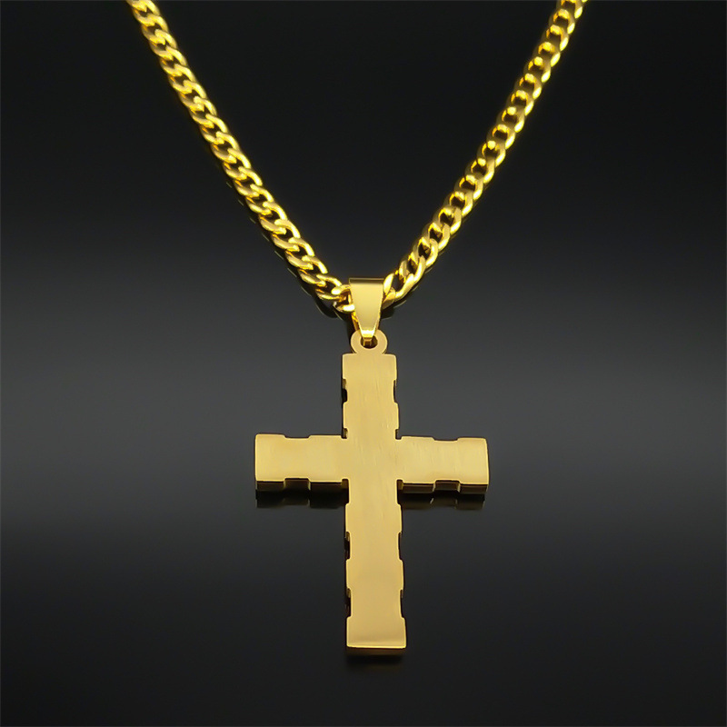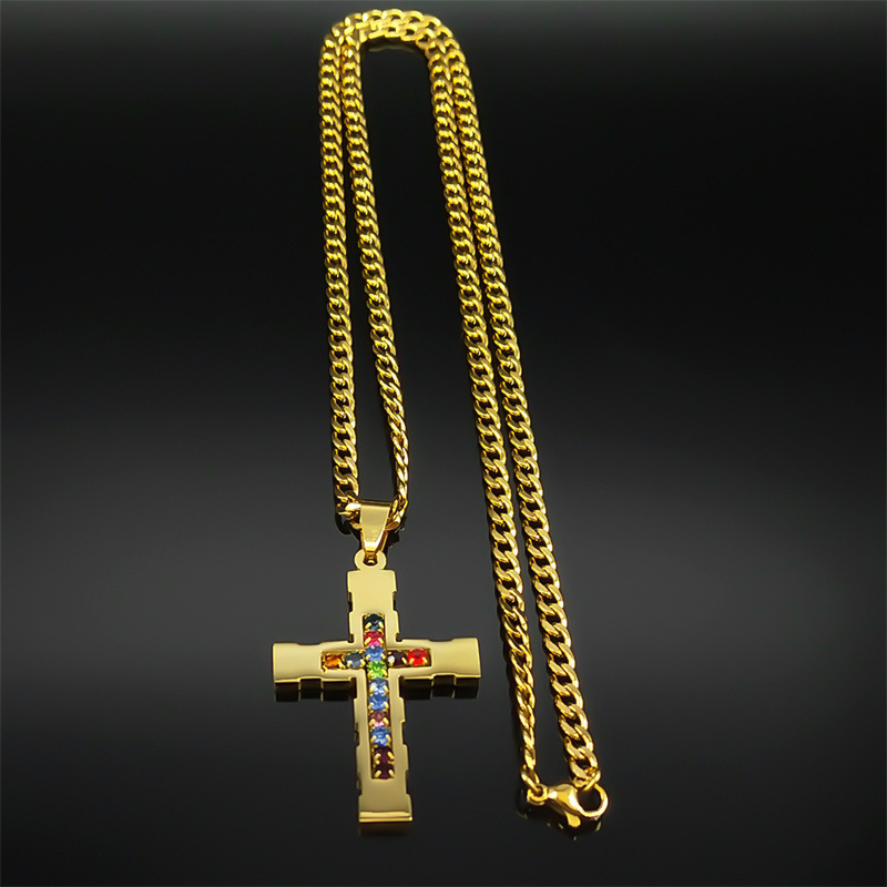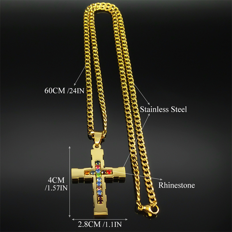 クロスボーダーの新型欧米のクロスペンダントの金色のステンレスのネックレスのアクセサリーの女性の高級感のヒップホップのダイヤモンドのネックレス