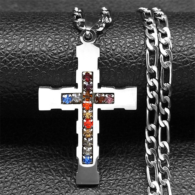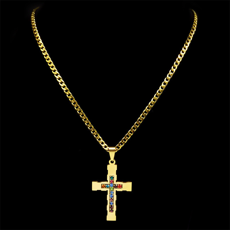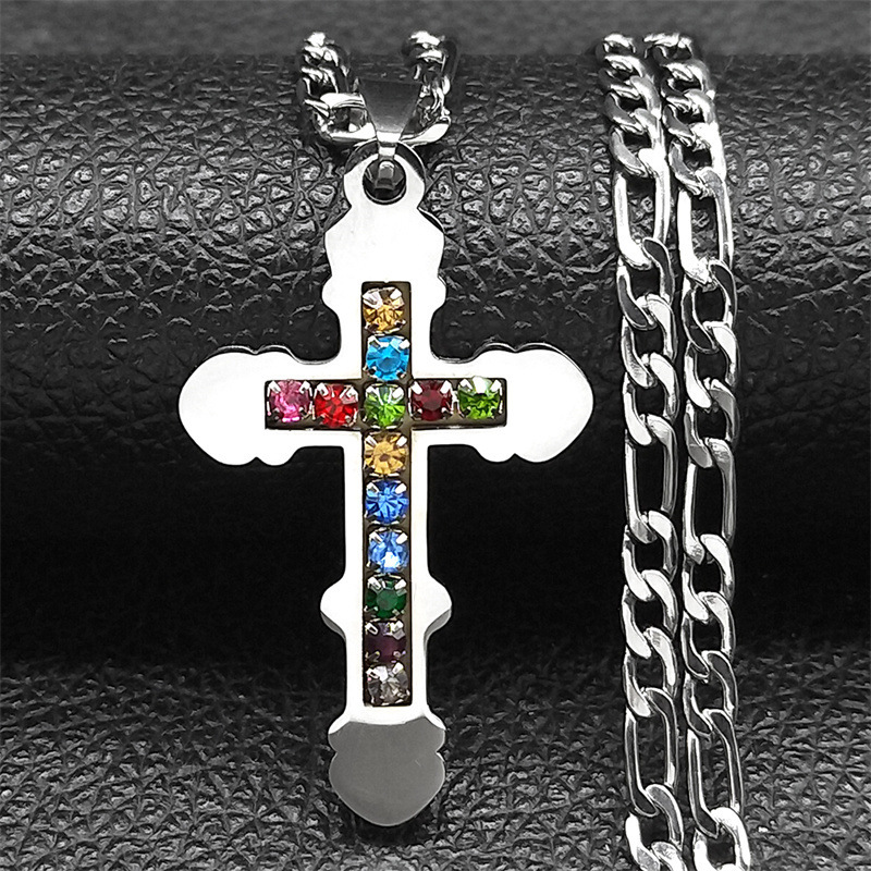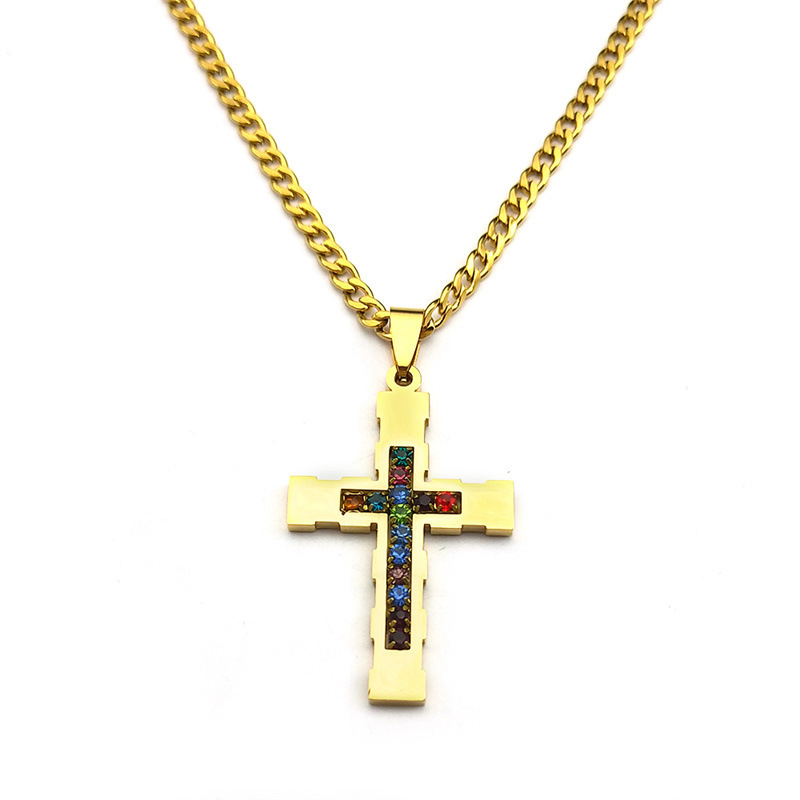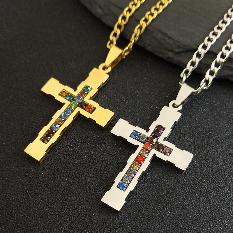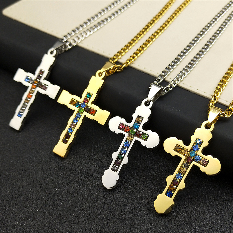クロスステンレスネックレスセントベネディクトクリスタルセントペンダントクロス男ネックレスジュエリーネックレス