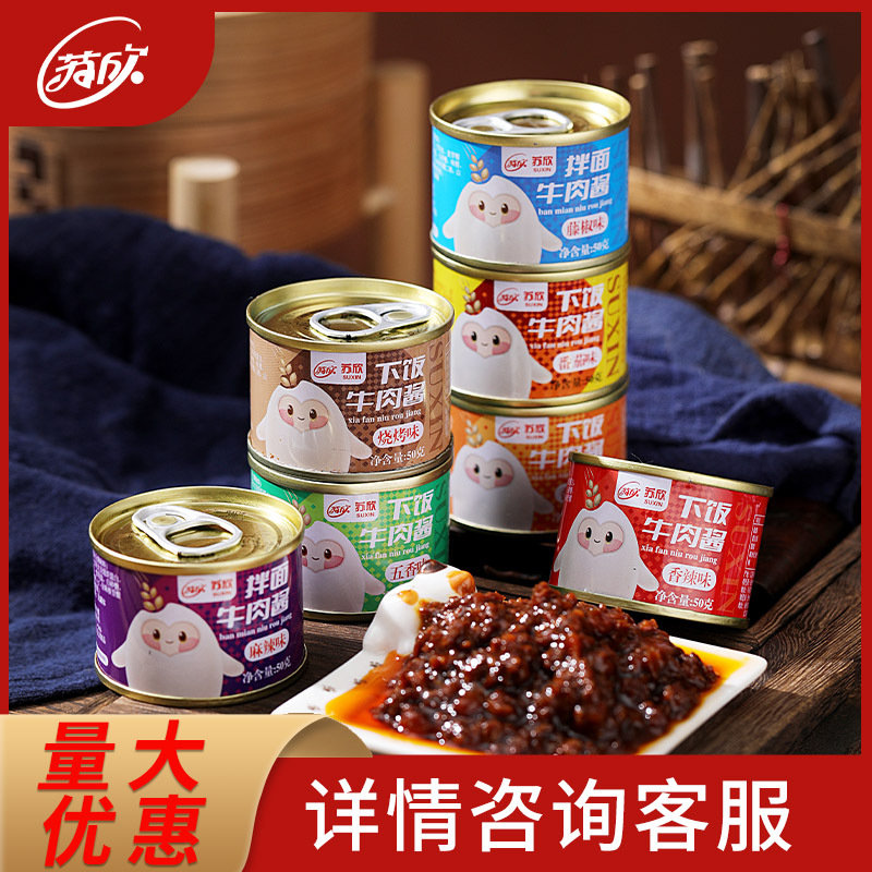 蘇欣下飯牛肉ソース藤椒味五香辛い牛肉ソースシイタケ味ネット赤小缶50グラムインスタント食品