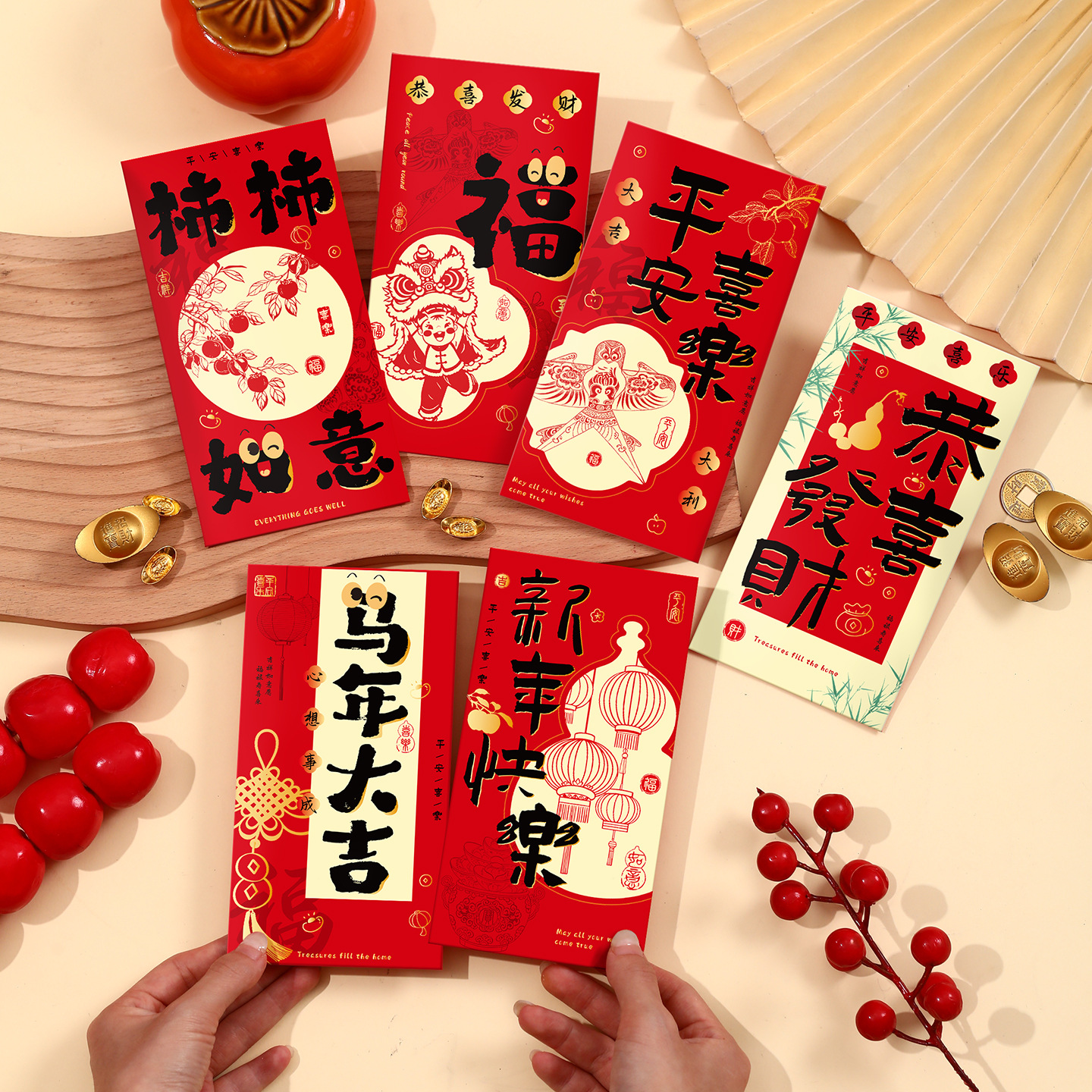 2026年新年紅包 馬年福袋 マット仕上げ 春節お年玉袋 箔押し汎用千元大吉大利紅包袋