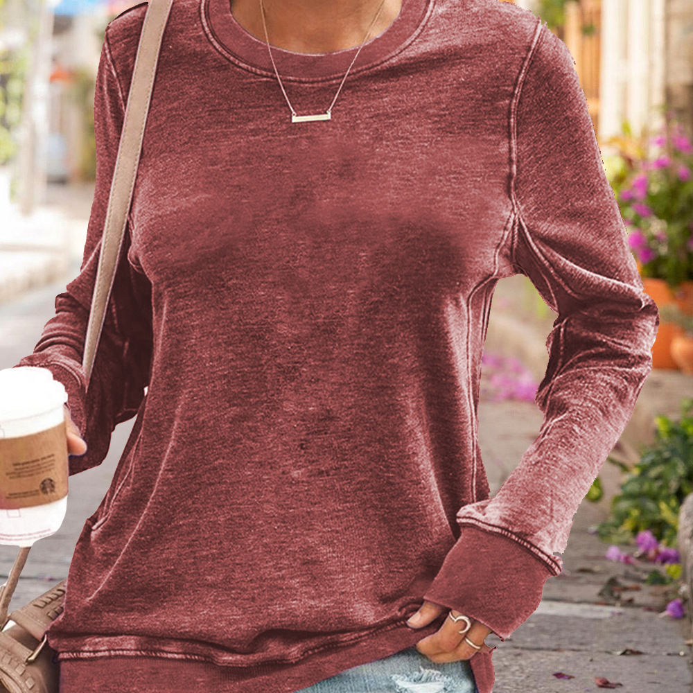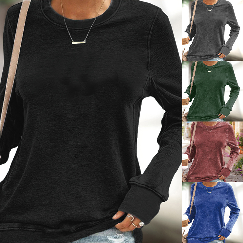 図面から製作 2025年秋 欧米風婦人服 クロスボーダー独立系サイト ラウンドネック長袖レディースTシャツ