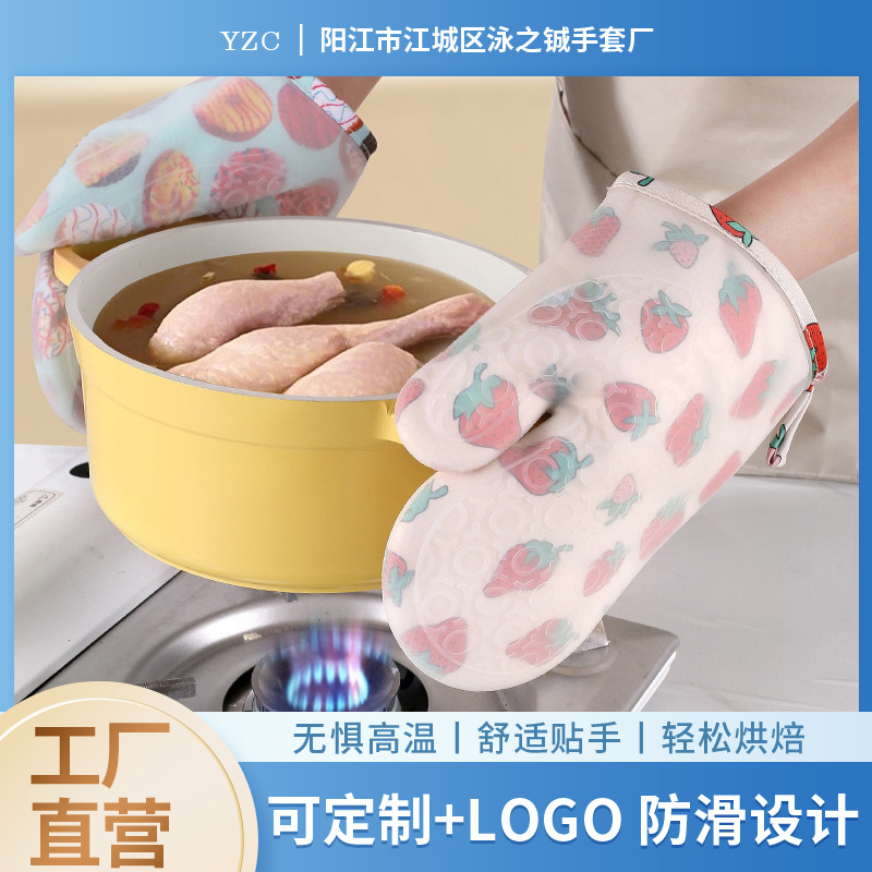 透明な花柄キッチンオーブン断熱耐熱手袋、厚手で高温耐性、電子レンジ、ベーキングツール、フルーツ用