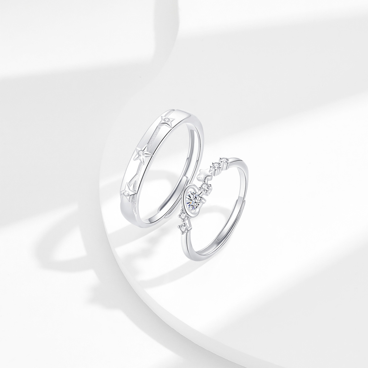 S925シルバーカップリングリング高级感オープン食指リングファッションinsジルコン星ペアリングアクセサリー卸売