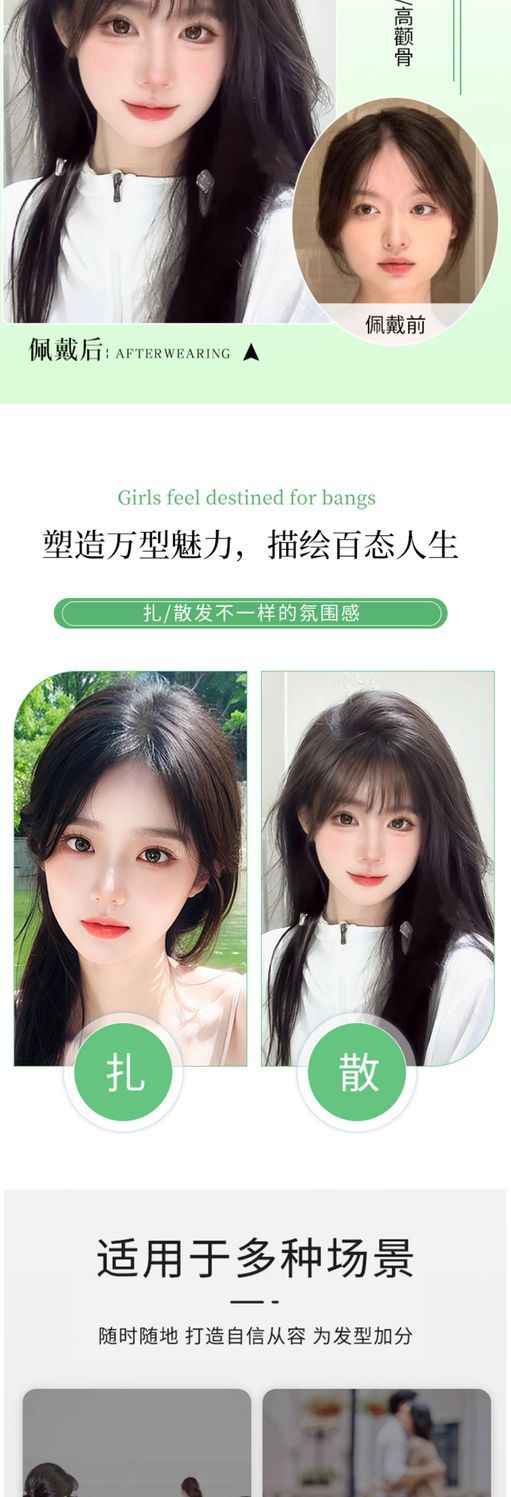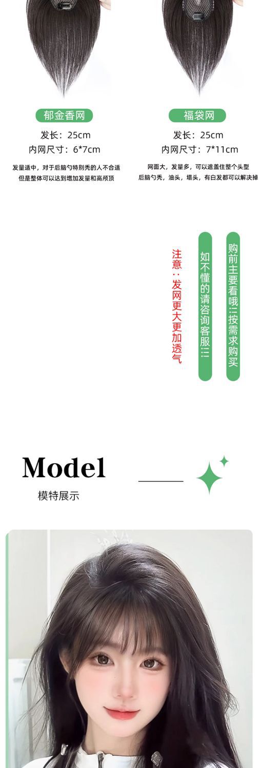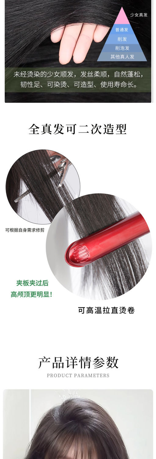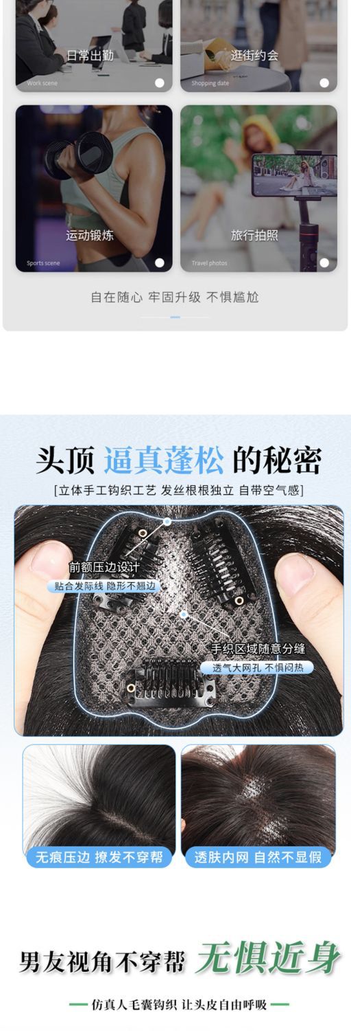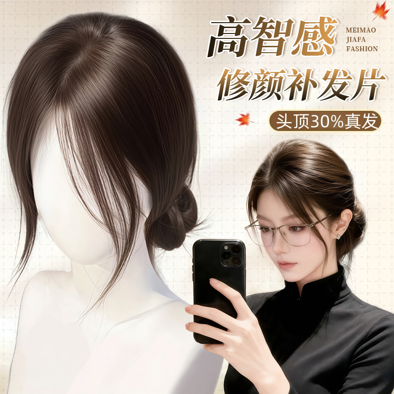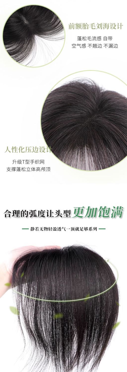 八字刘海假发女片头顶含真发无痕发遮白发蓬松增发量高颅顶假发片