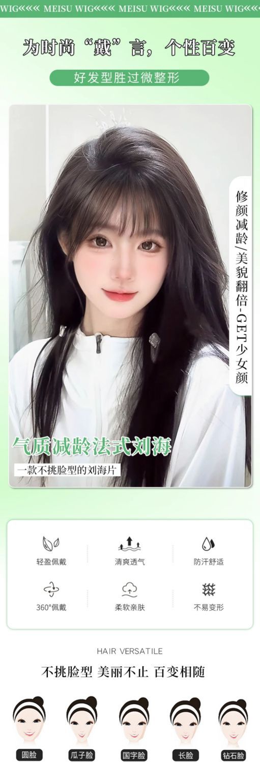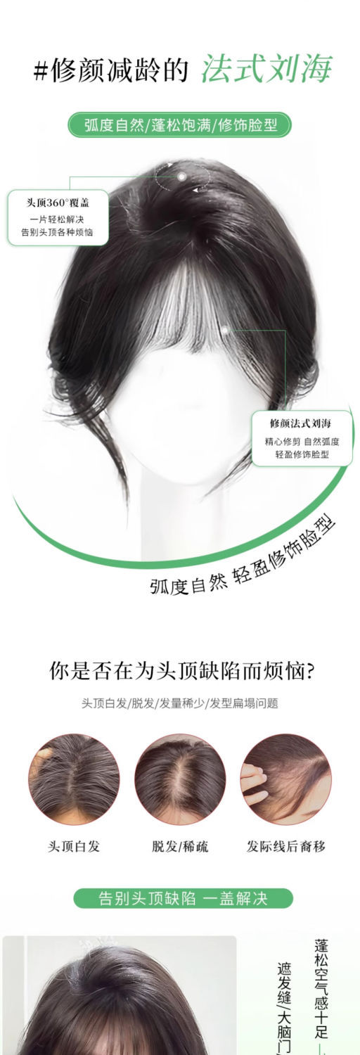 假发女八字刘海片头顶补发仿真发轻薄空气高颅顶遮白发发块中分