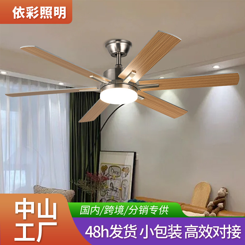 クロスボーダーLED伝統ファンライトシンプル木製家庭用吊り扇リビングライトレストラン寝室ファン中山イルミネーション