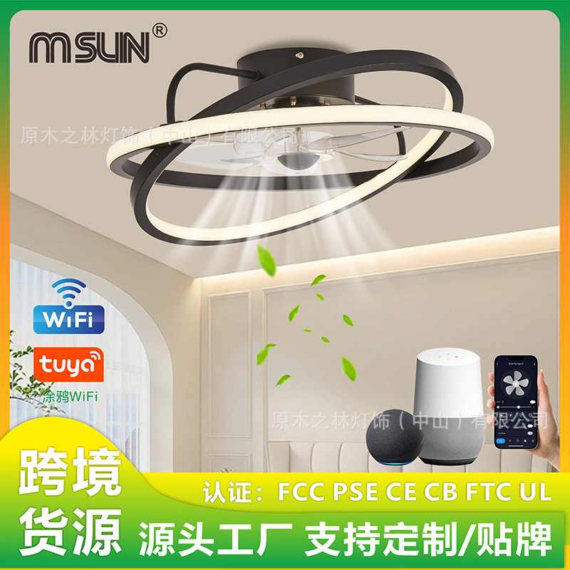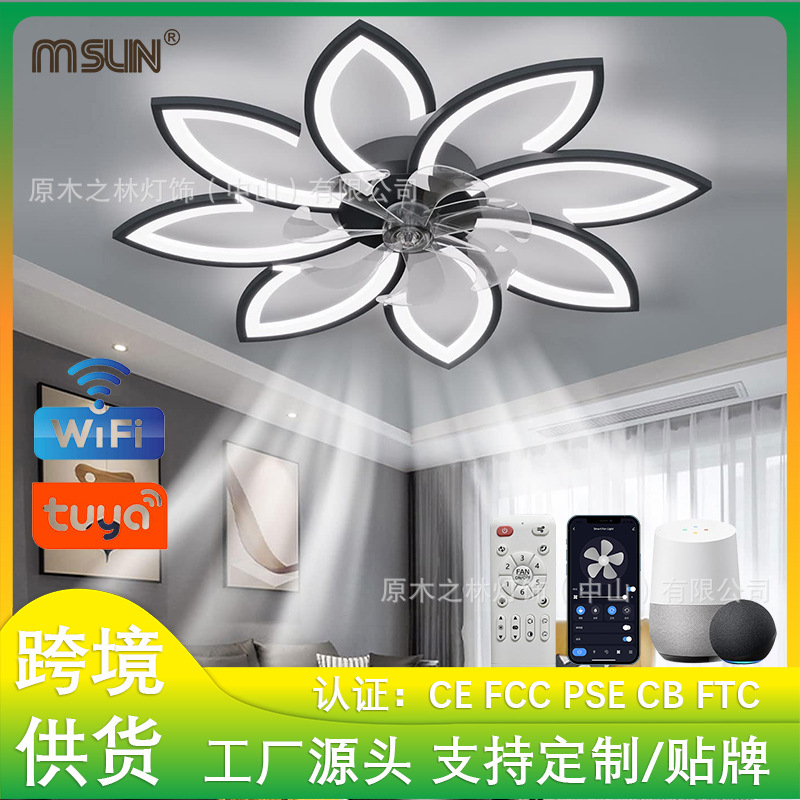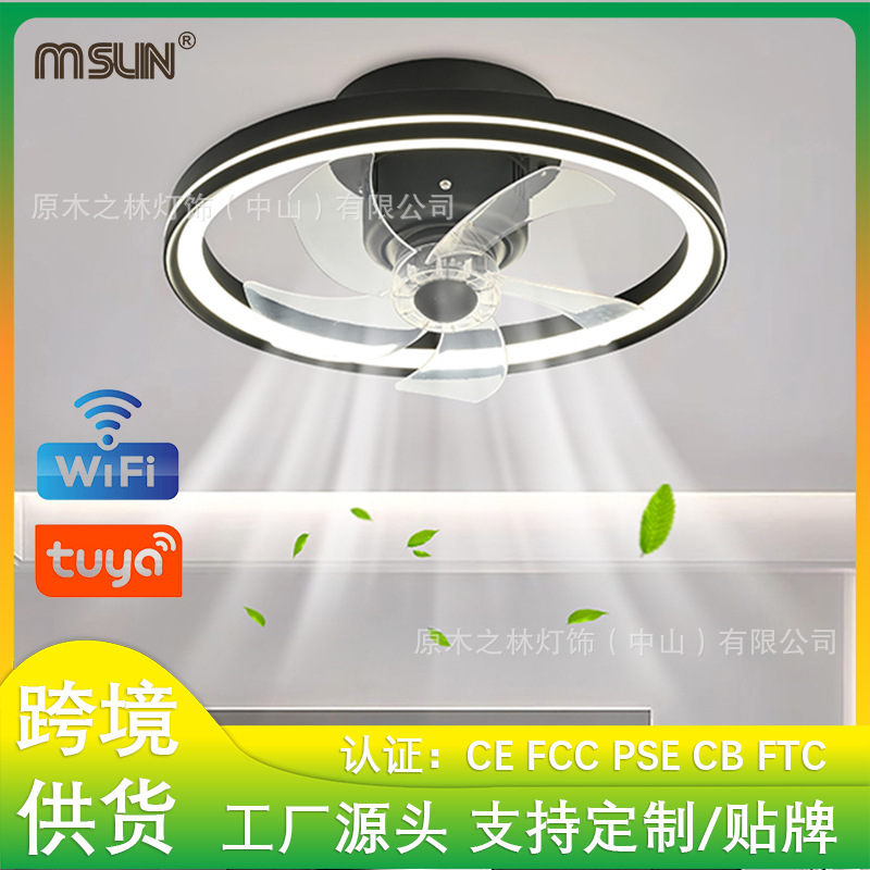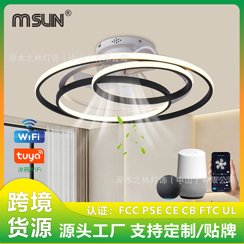 Amazonクロスボーダーヨーロッパ、アメリカ、日本標準ファンライトスマートリモコンTuya WiFiファンライト寝室シーリングファンライト工場