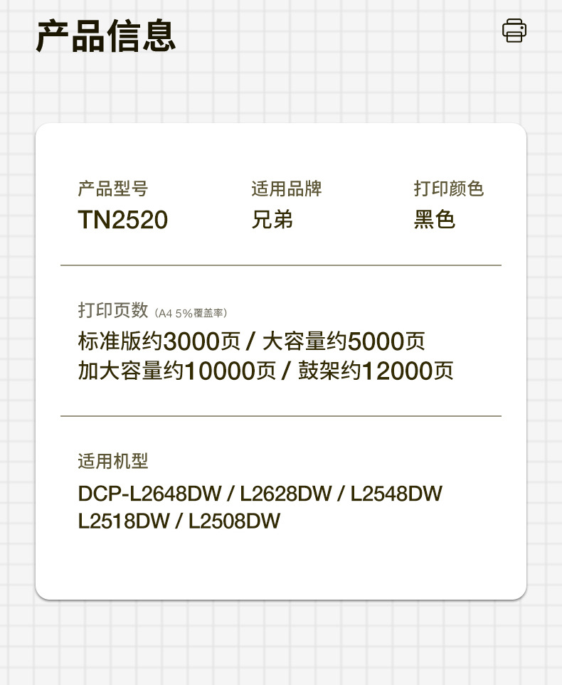 適用兄弟tn2520カートリッジl2648dw l2628dw l2548dwトナーカートリッジl2518dw l2508dw