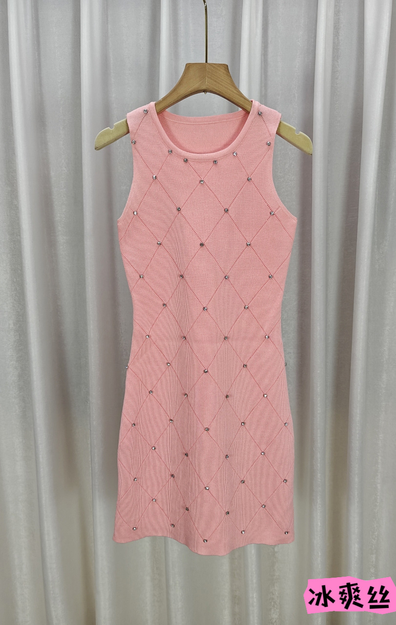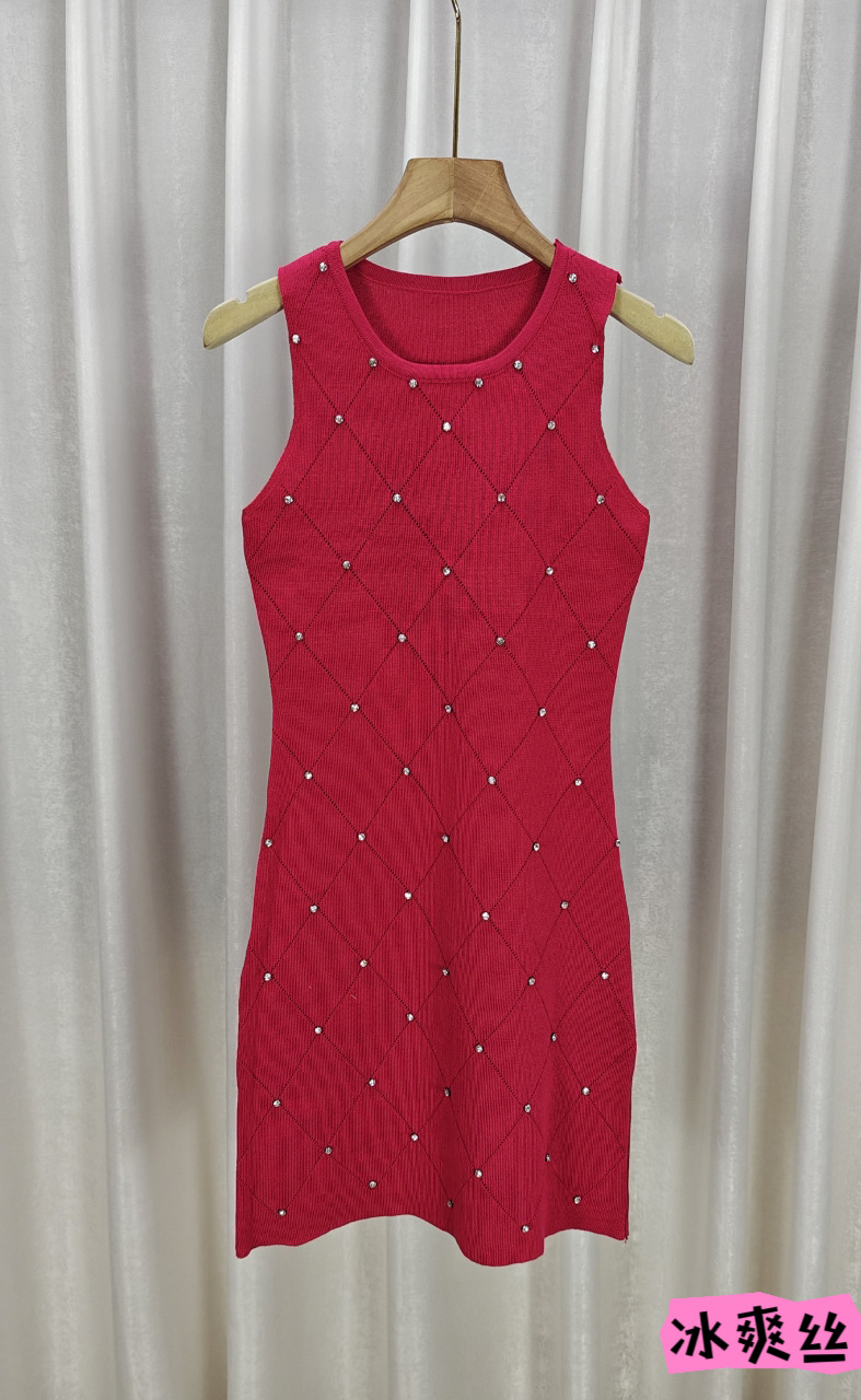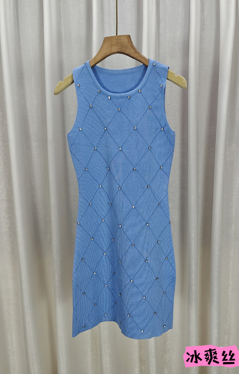 ネットの赤い爆発のセクシーなダイヤモンドのニットのワンピースの女性の夏の2023新型の小さい子のギャルの気質はヒップのスカートを包みます。