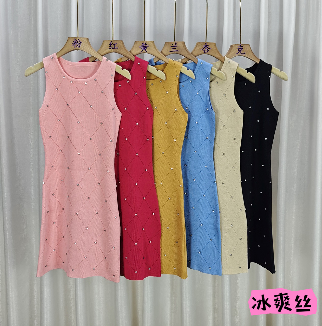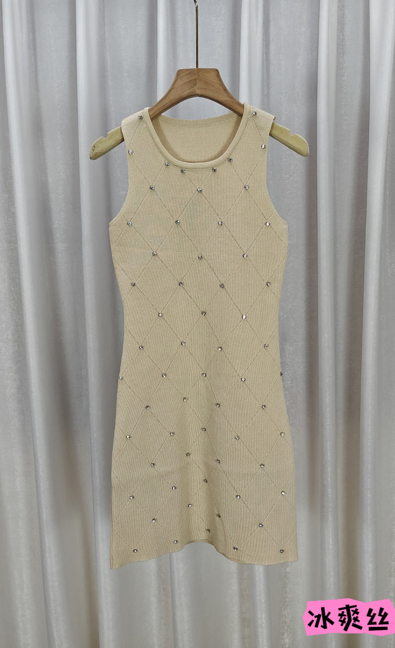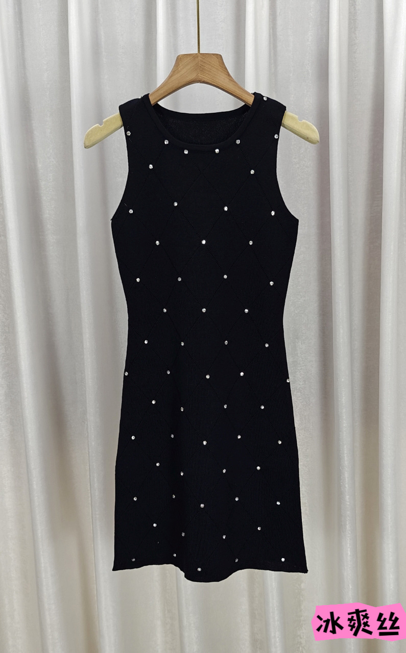 ネットの赤い爆発のセクシーなダイヤモンドのニットのワンピースの女性の夏の2023新型の小さい子のギャルの気質はヒップのスカートを包みます。