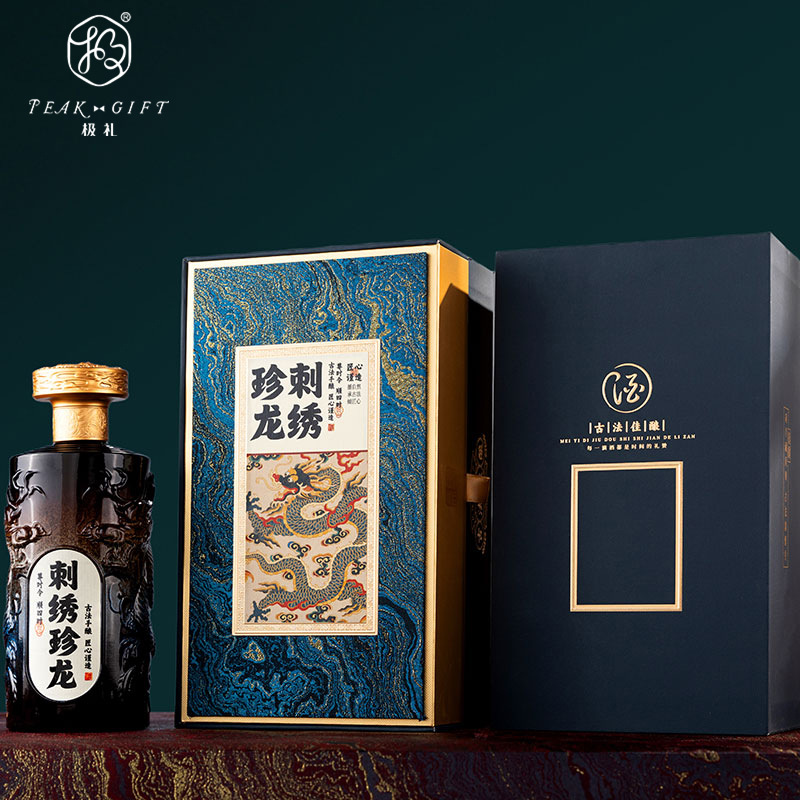 定制酒瓶及礼盒中国风刺绣烫金烤花小批量打印标签高端酒瓶空瓶