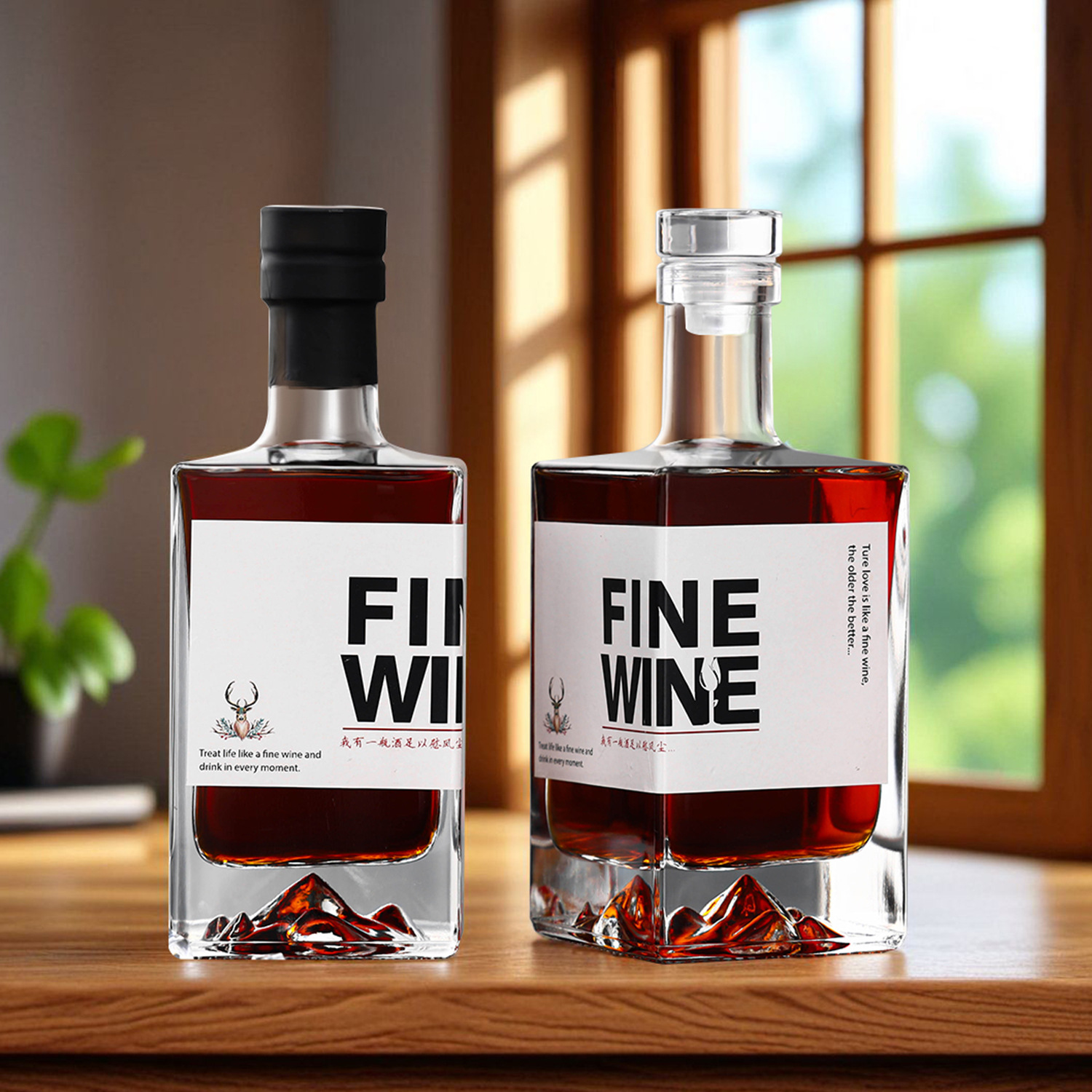 送料無料 山底型ガラス酒瓶 新型高級瓶 白酒瓶 果実酒瓶 赤ワイン瓶 密封