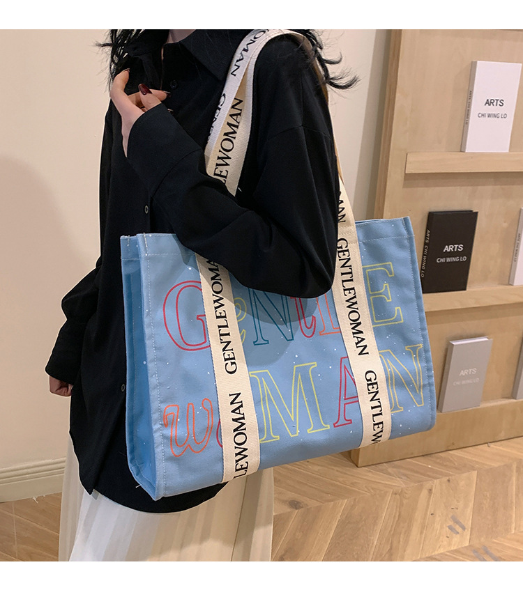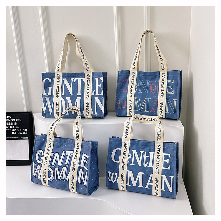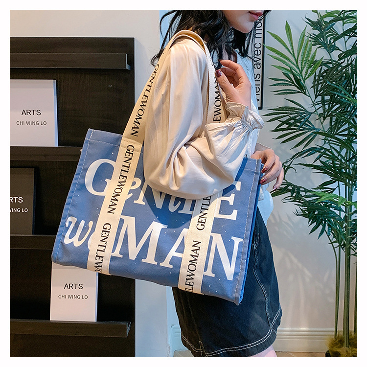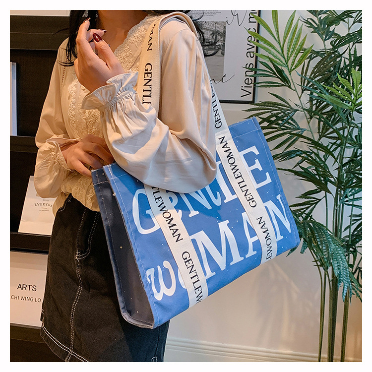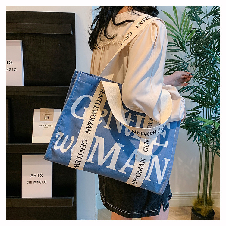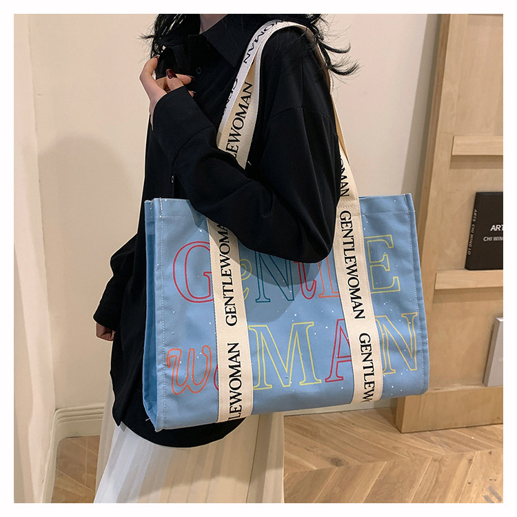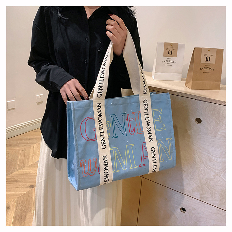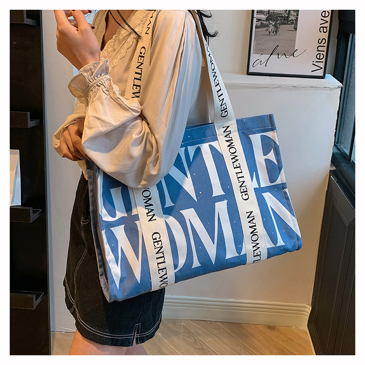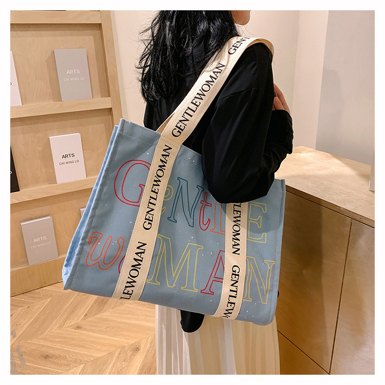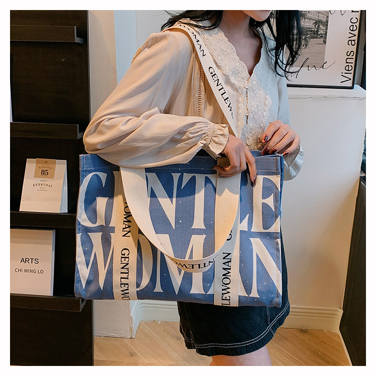 大容量キャンバス女性バッグ2022新型韓国風ファッションシンプルショルダーバッグアルファベットプリント文芸トートバッグ